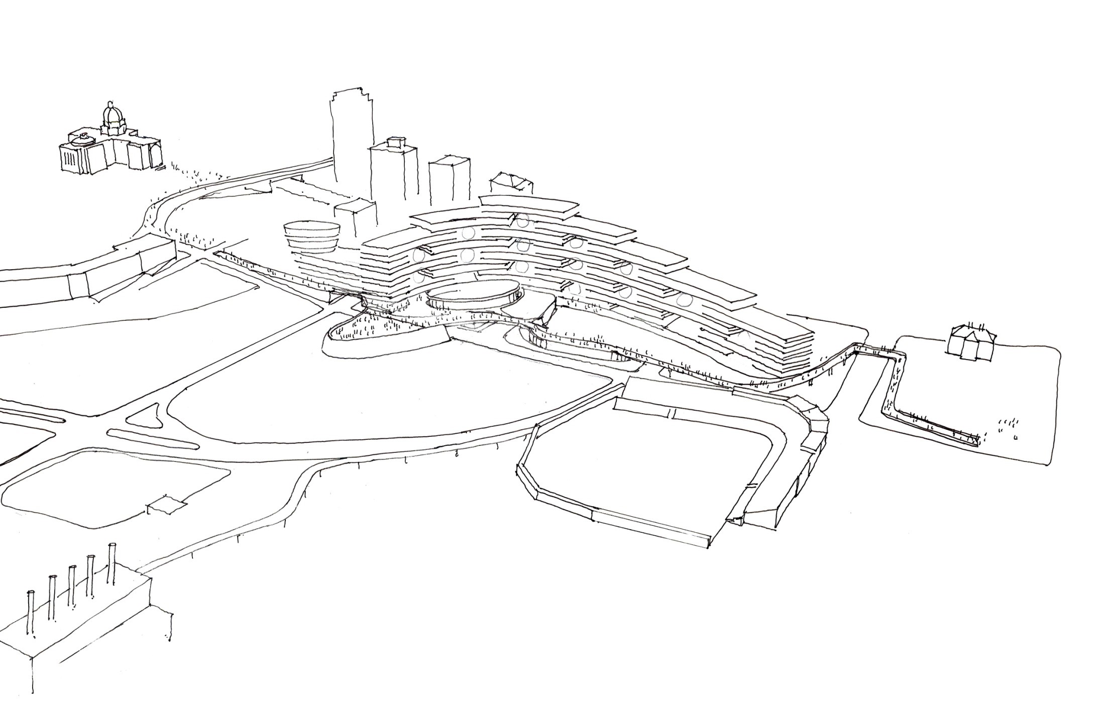 make sketch more abstract and muted and blurred style with little detail and cool tones abstract white space around no water