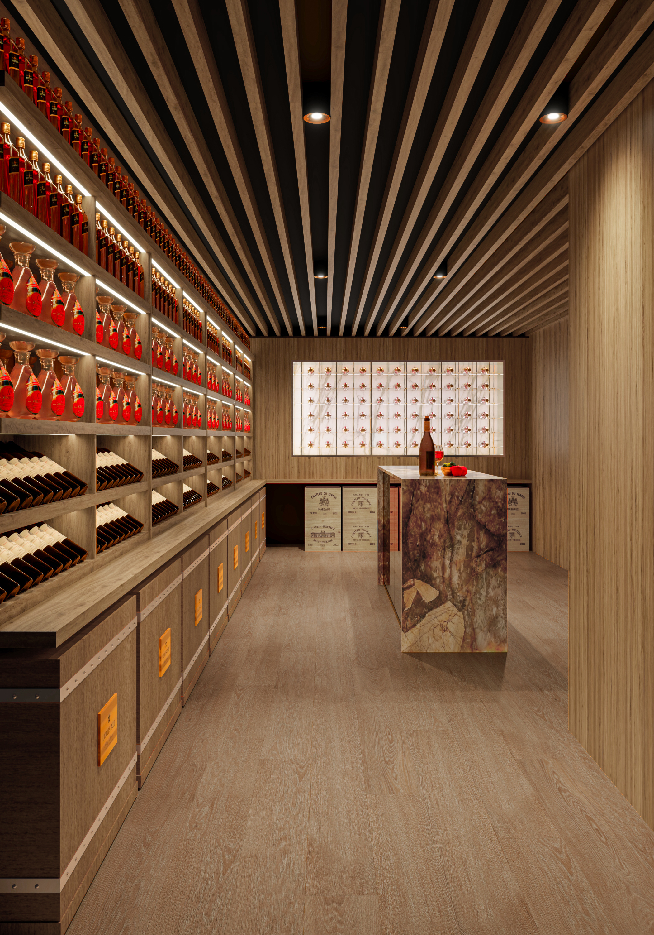 remove all the wine and whiskey bottle on the shelves