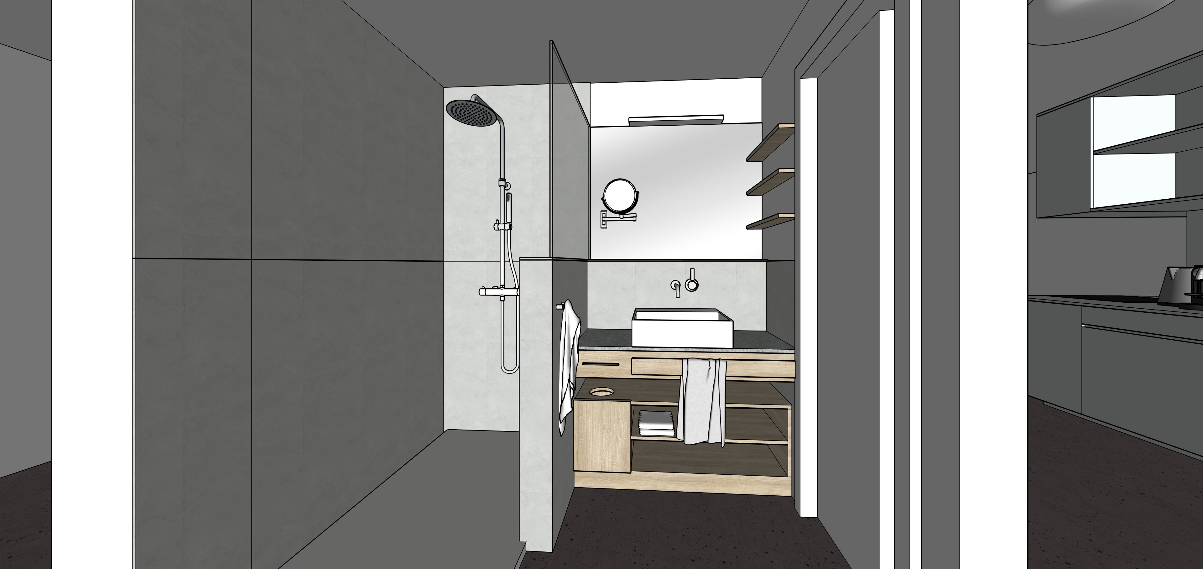 interior shot minimalize design bedroom connect with walk in closet middle tone wooden floor with earth tone decoration light colour bed rectangular dark colour rugs under bed and dressing chair architecture