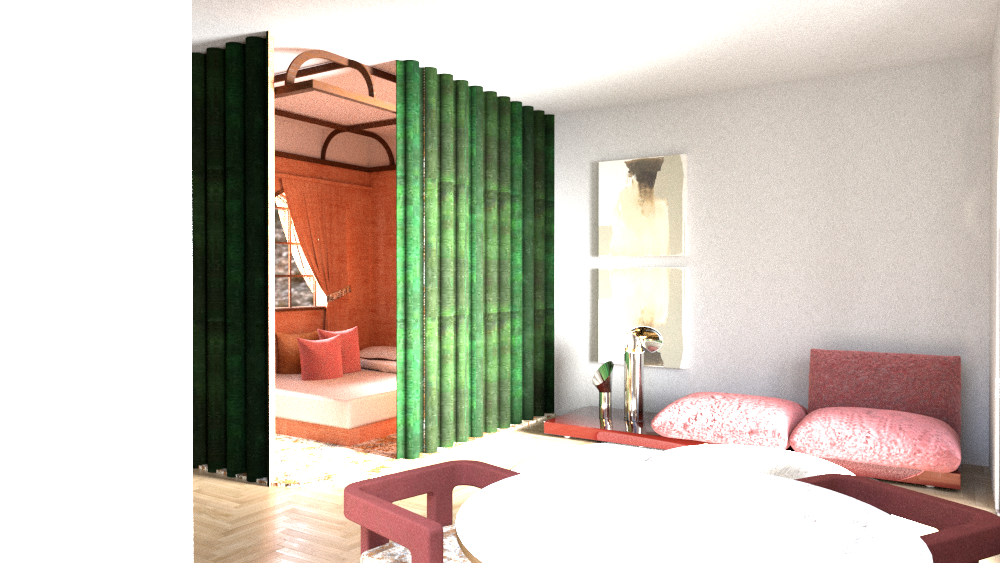 aggiusta i colori e la luce deve essere tutto pi naturale tende in velluto verde scuro e divano e sedie in velluto rosso che tende verso l arancio