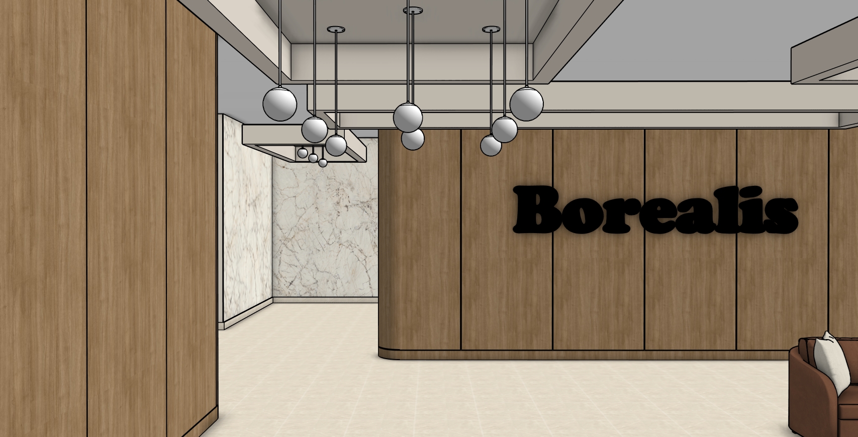 interior shot do not change visual image enhance image to be photorealistic do not change anything do not change materials colors or textures do not change the white glass on the globe pendants