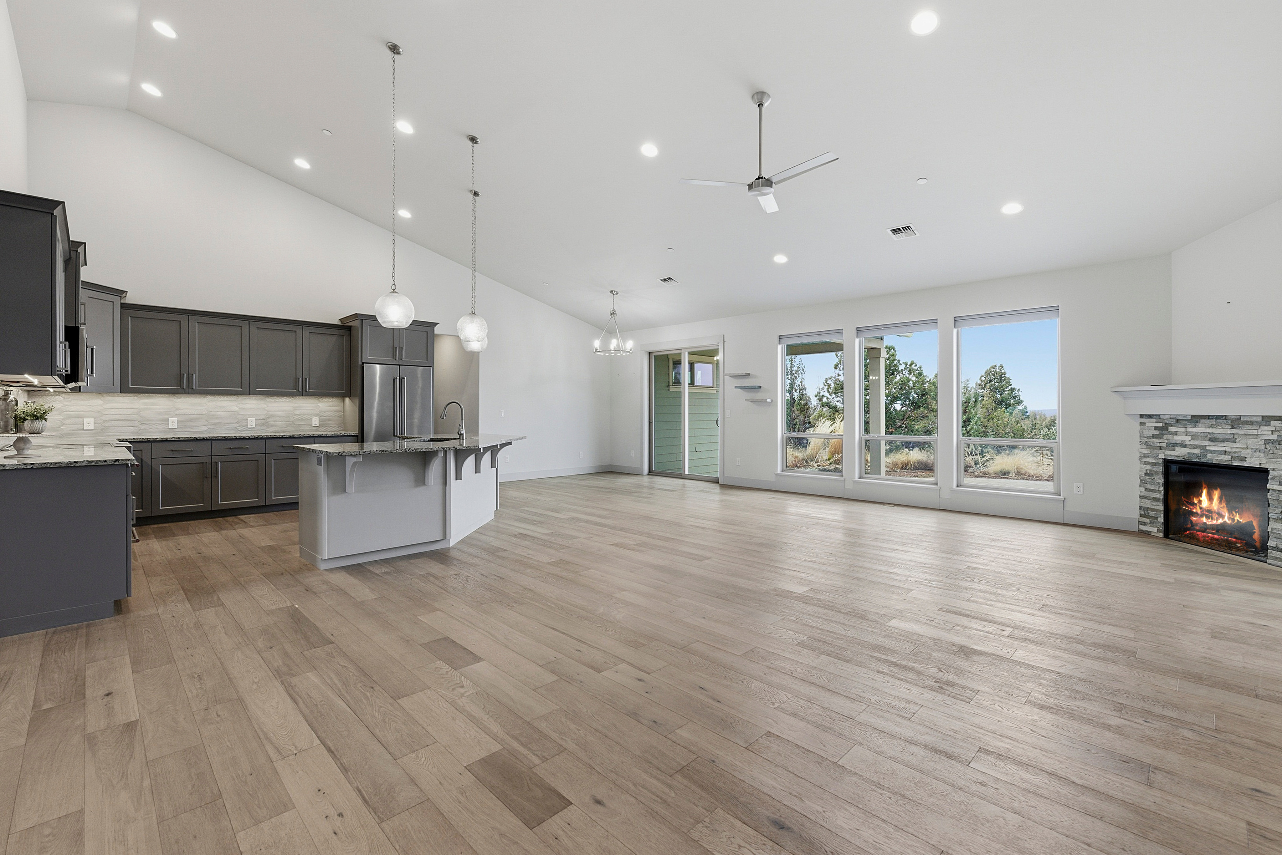 add dining table and chairs and living room furniture in modern farmhouse stye