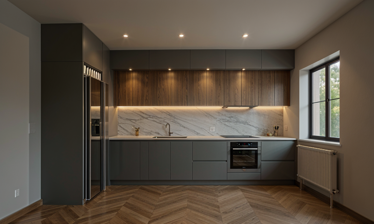 add spot lights on the ceiling add led light under the top cabinets remove pendant