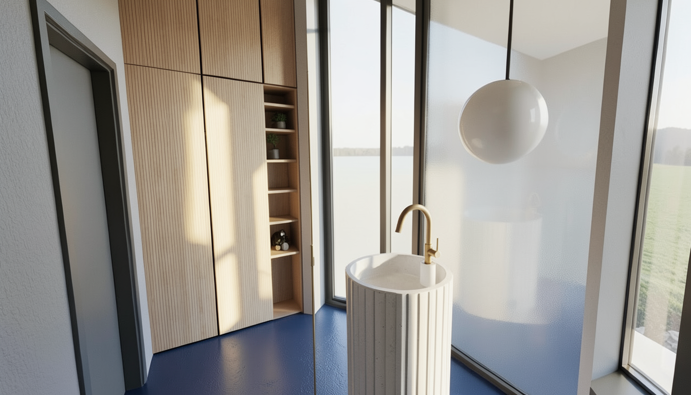 make the floor light grey make the brown woodwork flat no decorative frame on it