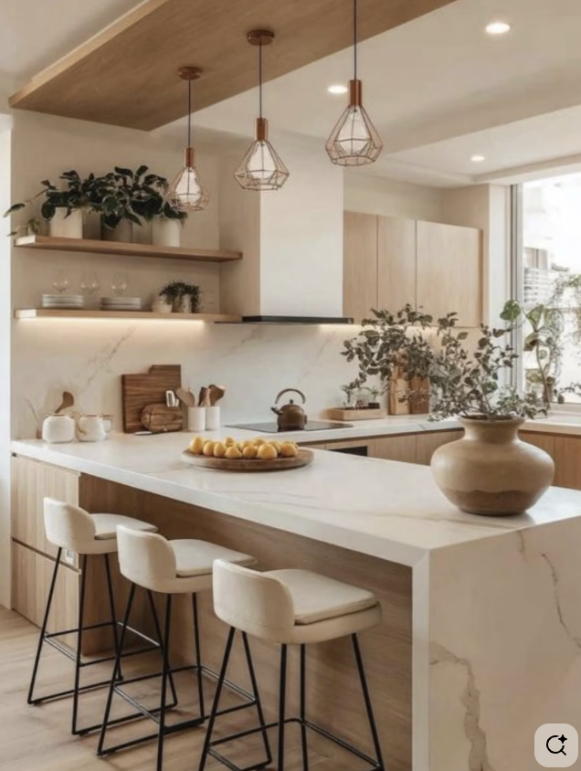 exterior shot render this model screenshot to match the style of the mood board image including the bar stools style inspiration is organic scandinavian modern