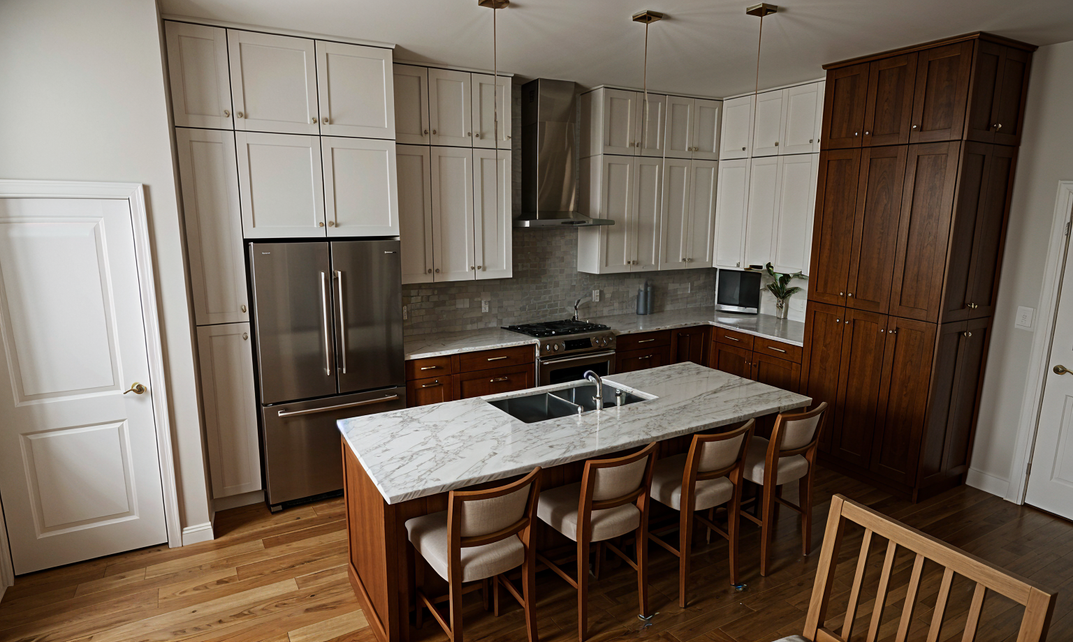 keep the same camera angle proportions and layout do not change or move any elements paint the sofa in green color natural soft green tone change the chairs mix green beige and light brown tones for a natural variety make the tables wooden with black marble pattern tops on the right wall add a flat tv and a few decorations such as pictures plants and small art pieces improve the lighting to make it brighter and warmer more realistic give the whole space a slightly more modern and elegant mediterranean look do not change the framing dimensions or furniture placement add olive tree
