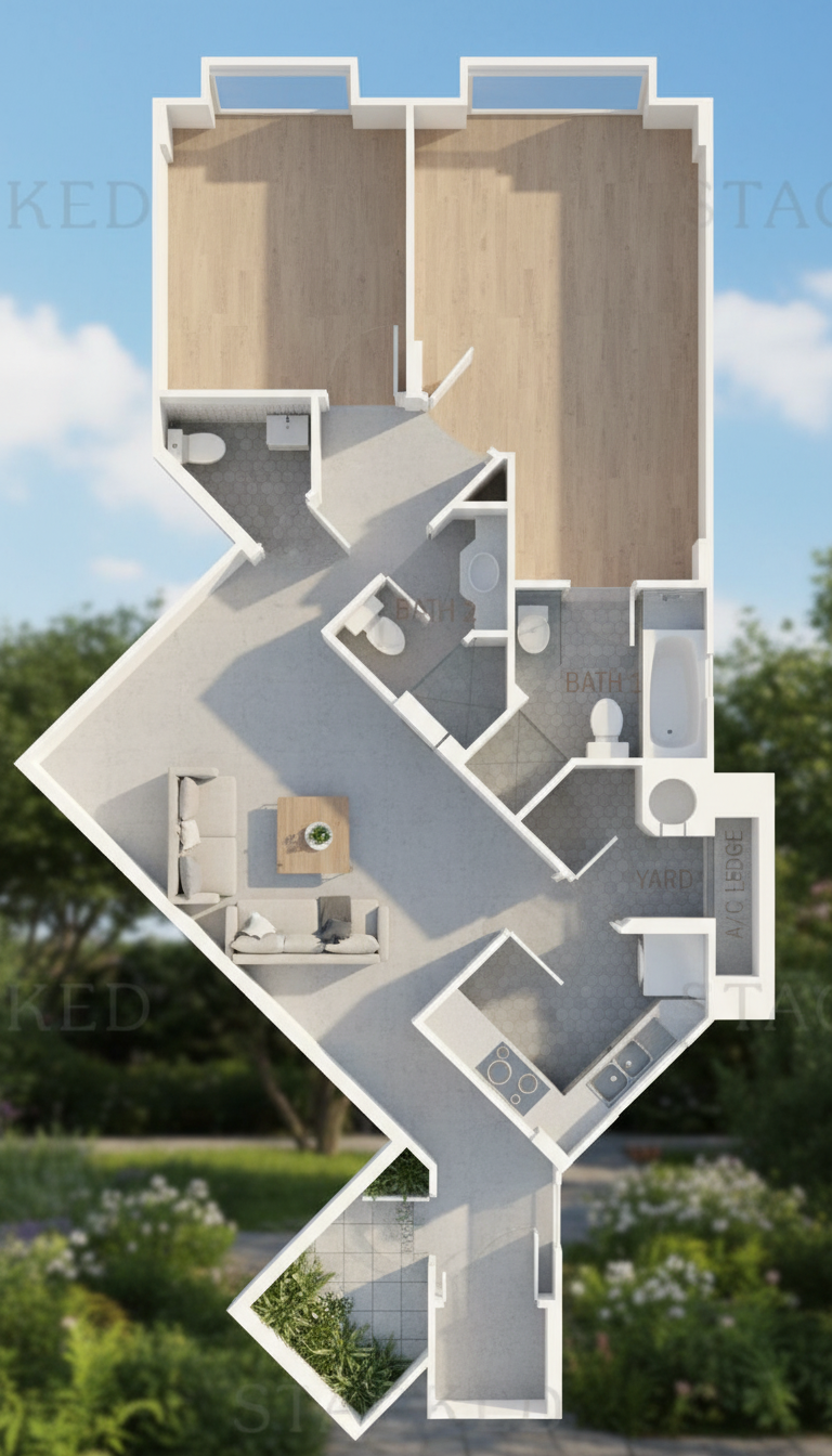 change the black lettering on the tv bic construction building better basements with the light blue swipe through it to white lettering make the carpet low pile pattern and add some light additional furnishings and show two wine glasses and a bottle of wine on the bar top change the stone behind the tv to white brick set 3 x6 bricks