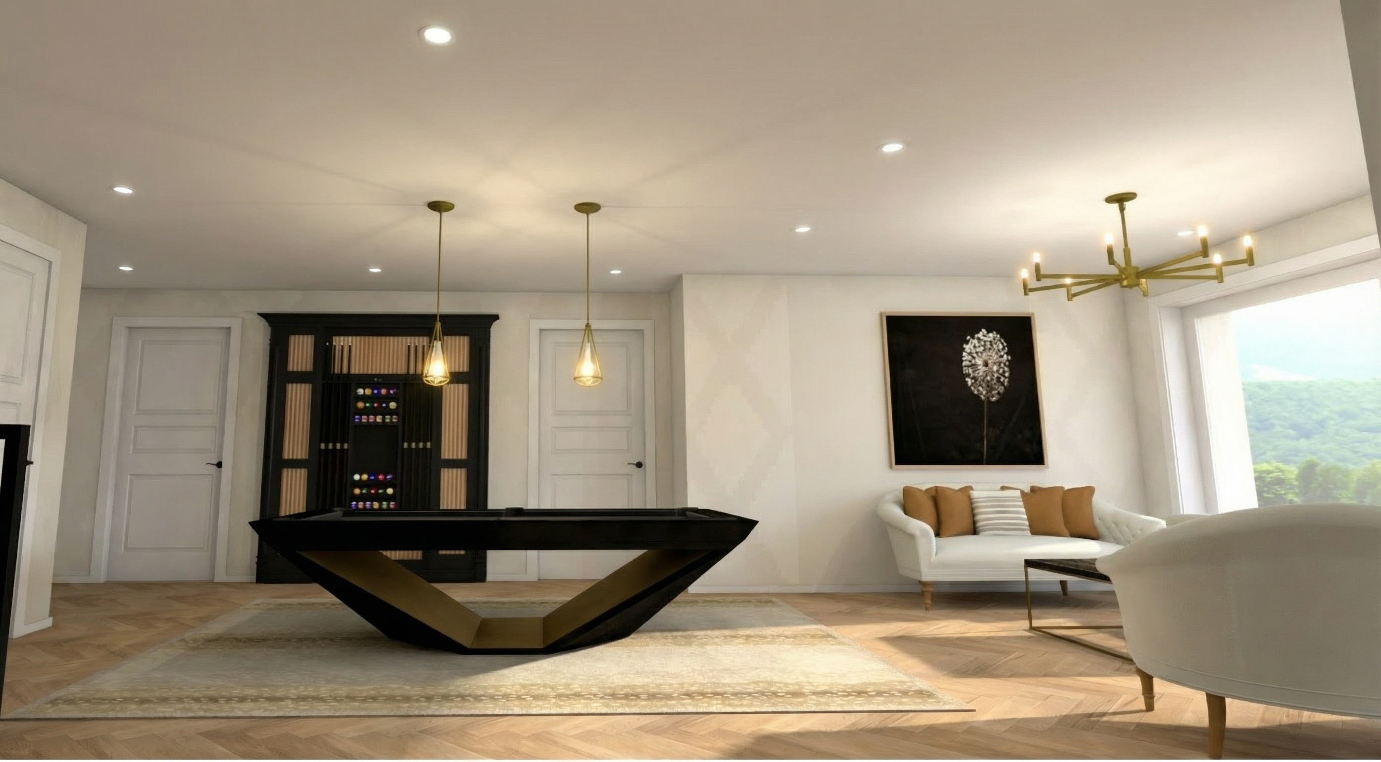 make a 3d elevation of home on a wooded lot that slopes down to the rear and has landscaping that doesn t get in the way of the driveway have clouds in the sky shingles are black garage door is black gutters are black windows with grids are black siding is functional gray color trim is snowbound color brick is coral blend color by brickcraft