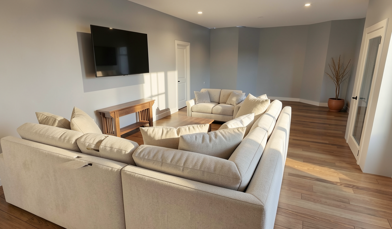 only remove ceiling pendant light make floor lighter add mosaic tile to wall behind the tub add water in the tub make it dusk outside windows add fluffy white round rug to floor in front of tub add white painted panels to columns and arch above