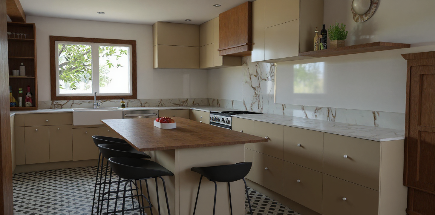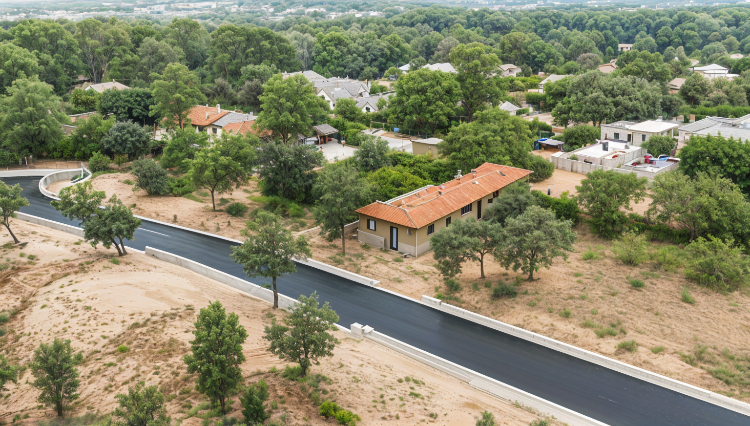 exterior shot create a beautiful scenic rendering of a suburban street with a sleek modern suv the main elements include a dark grey suv parked on a smooth dark asphalt driveway lined with light grey paving stones the cozy house features a white exterior with a grey shingled roof and surrounded by lush greenery deep green hedges and vibrant plants the overall atmosphere is serene and inviting with clear blue skies and soft sunlight casting gentle shadows the setting is enhanced by natural colors of the environment such as earthy browns of nearby trees and the soft pastels of neighboring houses architecture