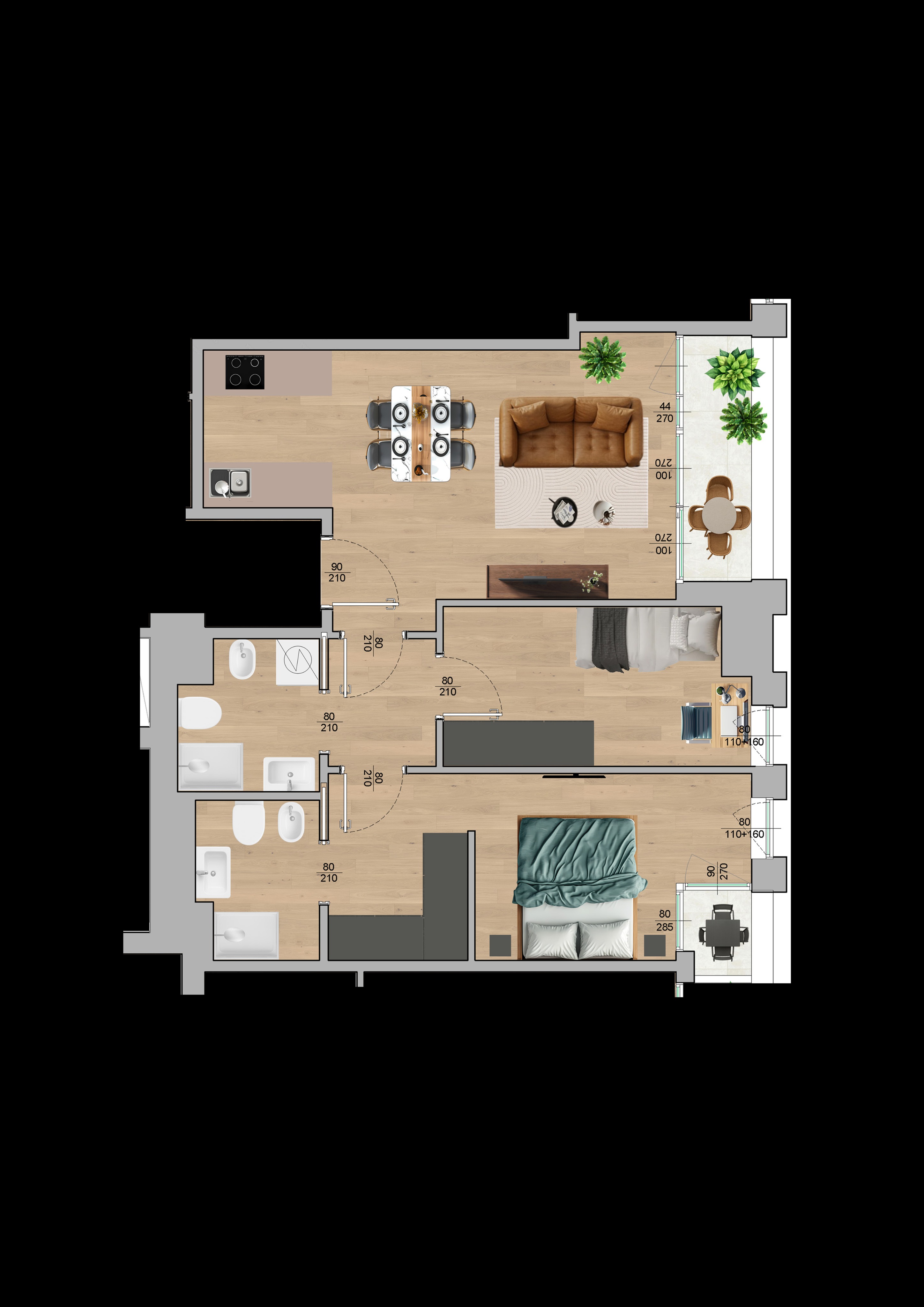 convert this floor plan into a realistic isometric 3d view of a full house show the space from an elevated angle with furniture walls and details visible more isometric use the same furniture as shows on the plan do not change the orientation of the floorplan
