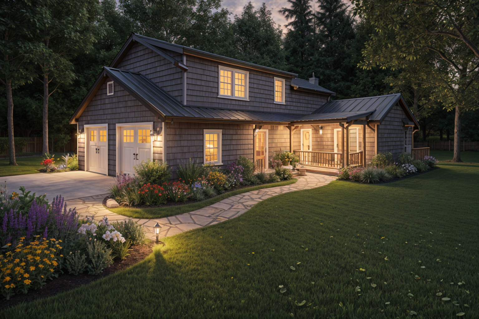 create a realistic scene enhance what is there make the brick red add small plants that compliment the scene
