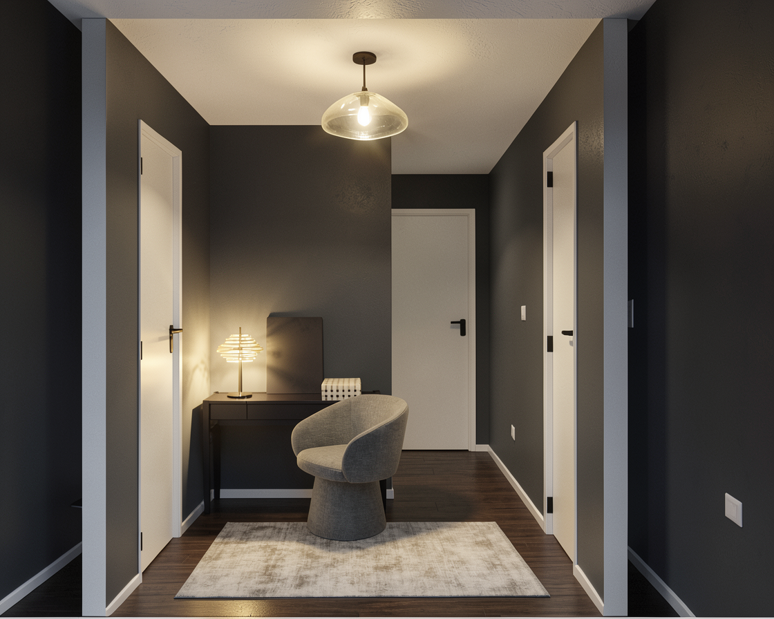 exterior shot photorealistic architectural interior render of a childcare center cpe based strictly on the provided sketchup image do not add remove or modify any architectural elements furniture openings or layout keep all objects proportions and positions exactly as modeled all existing ceiling light fixtures must be turned on and emit soft realistic illumination combine artificial lighting with natural light if present keeping a balanced and believable exposure preserve the original colors and materials but enhance them with realistic textures accurate material properties and subtle imperfections wood grain fabric softness matte finishes child friendly clean calm and warm atmosphere suitable for a cpe environment realistic global illumination soft shadows correct scale neutral camera perspective no dramatic effects no stylization no artistic interpretation ultra realistic architectural visualization professional quality natural color grading no new furniture no extra decor no change in layout no change in wall positions no change in ceiling design no natural light from the doors glasses interior door all walls and ceiling must remain their orginal colorsdo not add new light fixture in the furniture