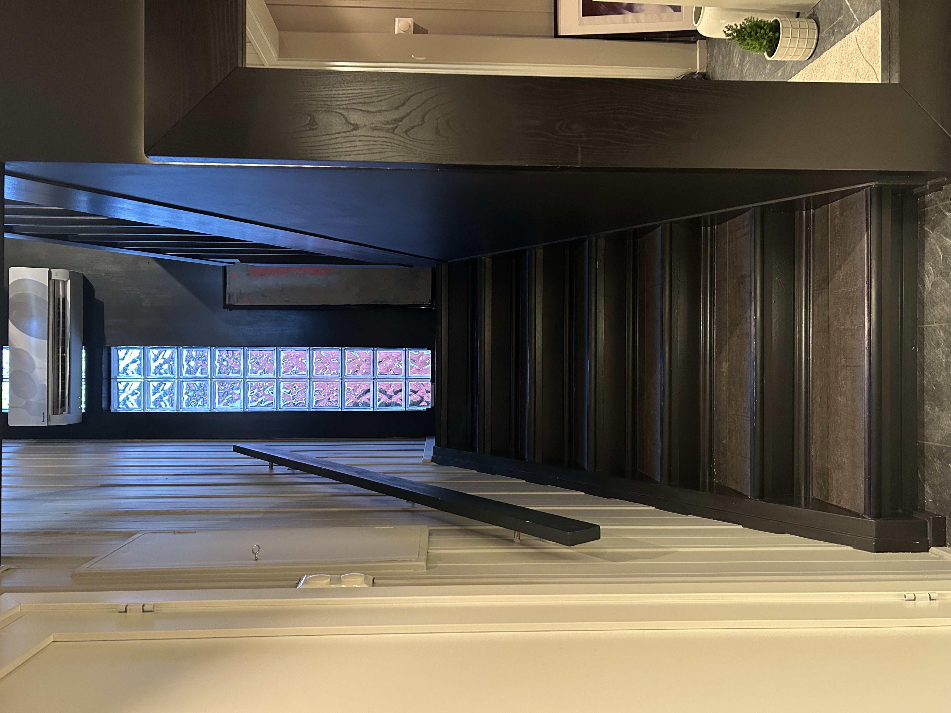 modernist exterior shot render a modern stair with modern lights and with bright colors beige and white architecture