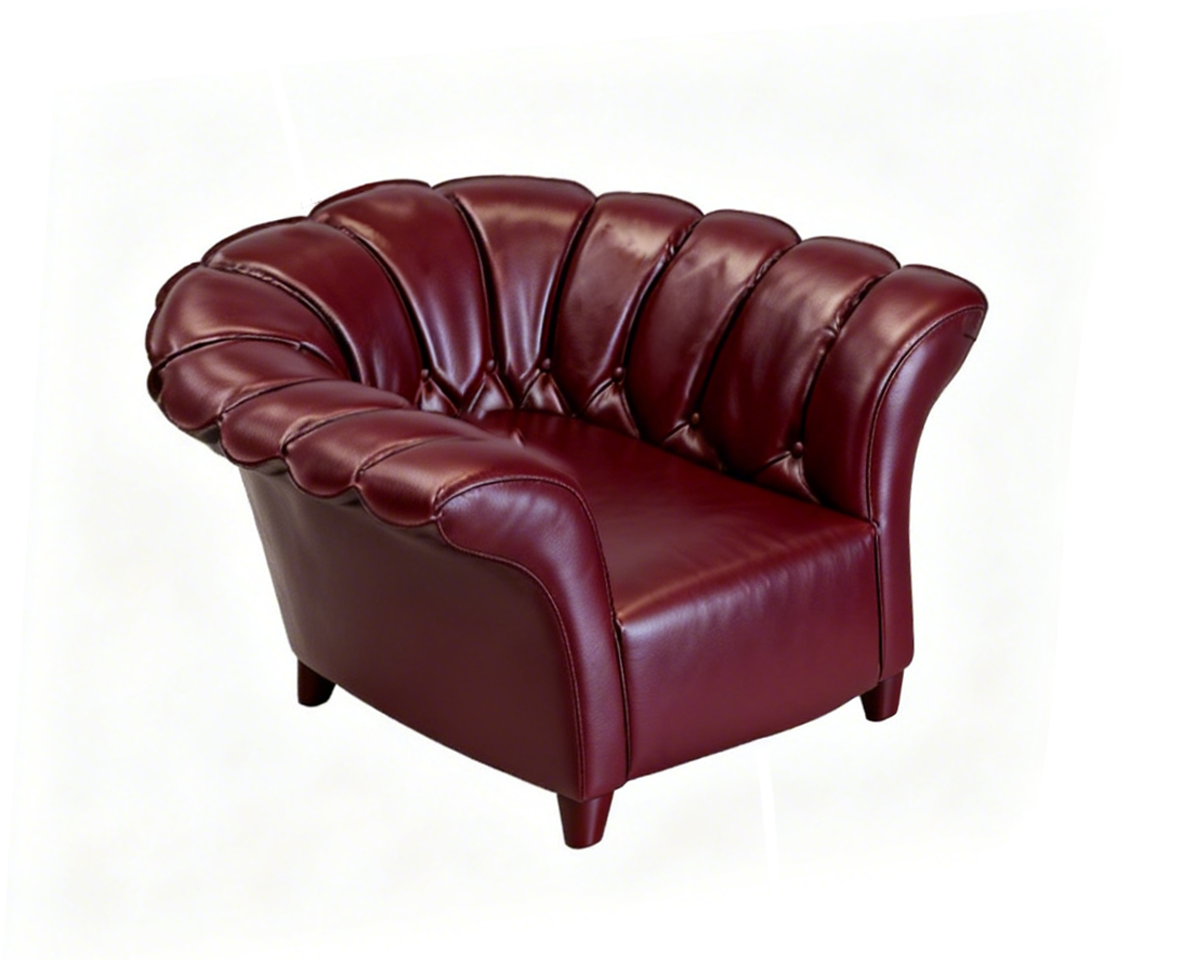 soft beige fabric chair in neutral concrete background