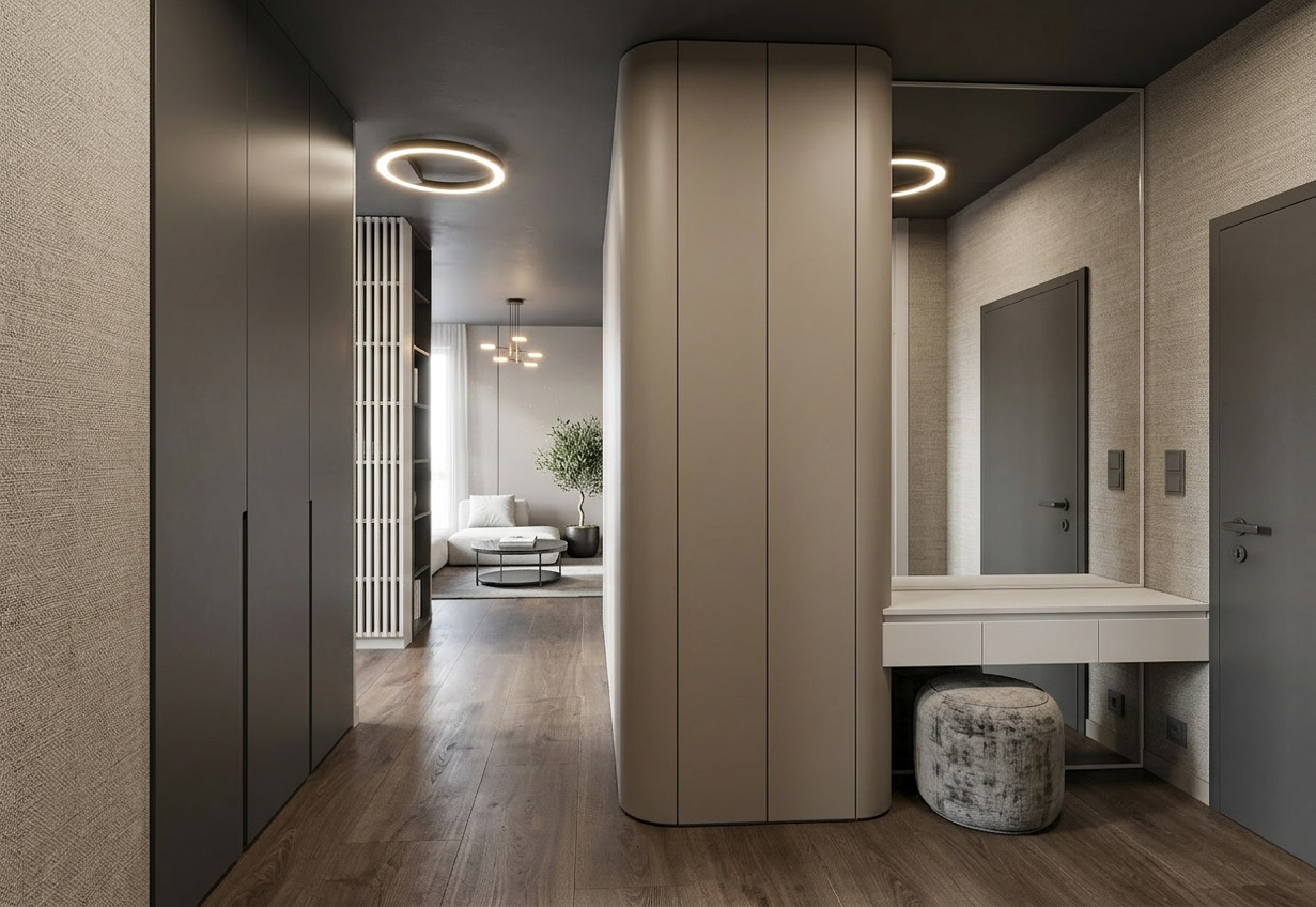 table lamp on beside bed with flush ceiling spotlights on too