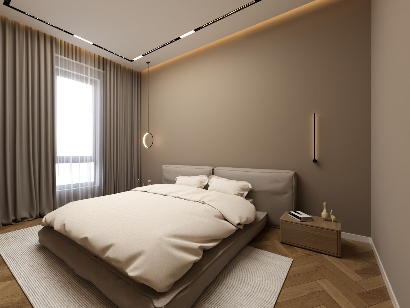 render the scene in high resolution with realistic lighting preserve all objects colors textures and positions exactly use only natural daylight softly illuminating the room creating subtle shadows and depth keep a minimalist style with clean lines simple forms and neutral materials do not use any artificial lights or glow focus on a calm balanced and lifelike atmosphere do not change the color