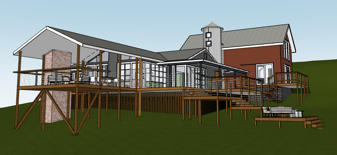 barn style house with dark grey easyclad cladding on the left and dark red easyclad cladding on the right wing located in kangaroo valley nsw show grass plane and foresty hills in the background