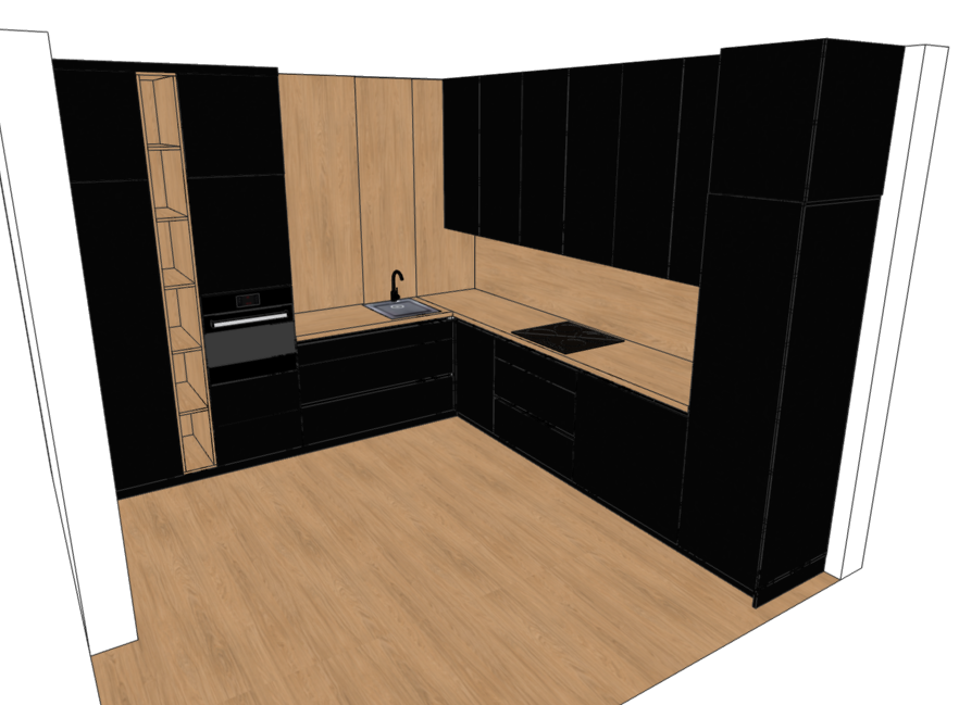 sprav vizualizaciu do otvorenej skrinky v drevodekore daj zvilo led svetlo