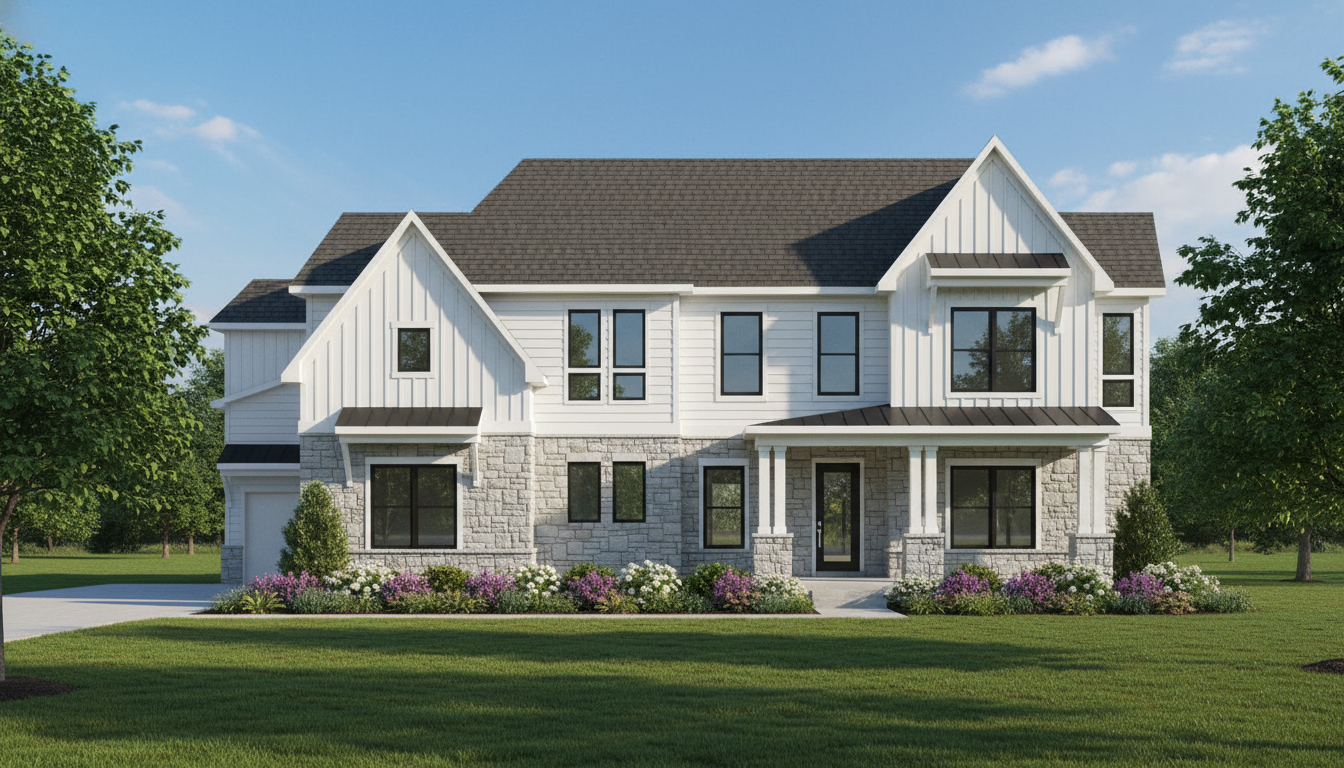 everything in this picture stays the same but add a proportionate fourth window to the left three side by side windows to exclude the narrow door in that section where the 4th proportionate window will be because this 4 window section should not be recessed back on the proch and should be flush with the far left addition