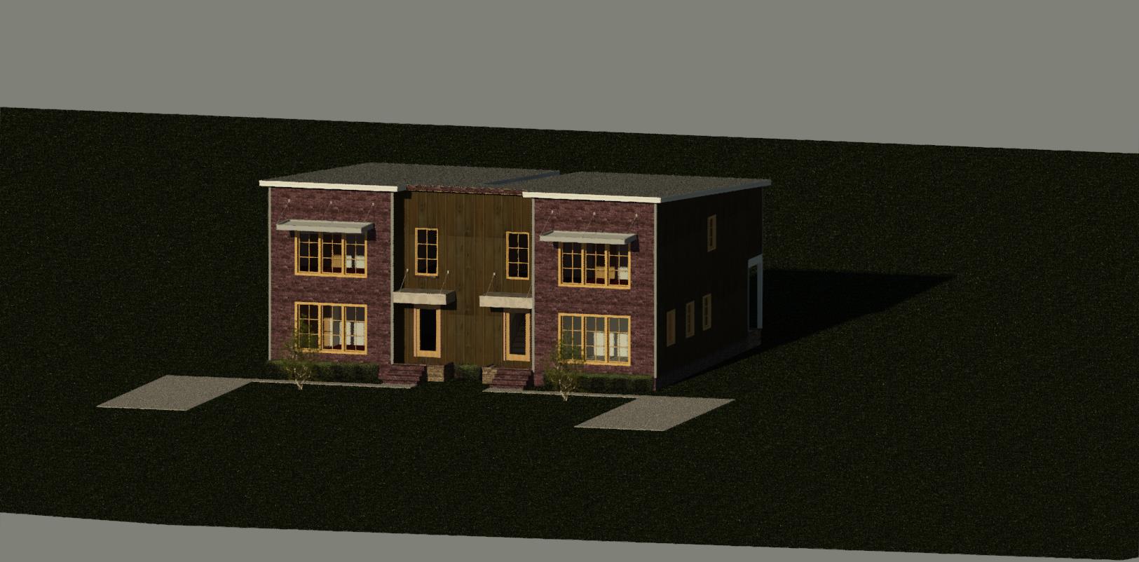 modernist exterior shot here we have a 2 story duplex home with brick veneer and vertical siding architecture
