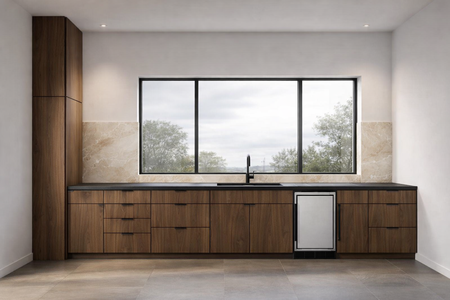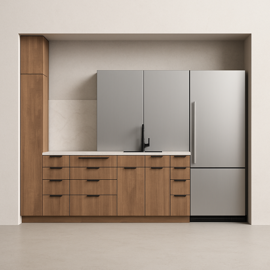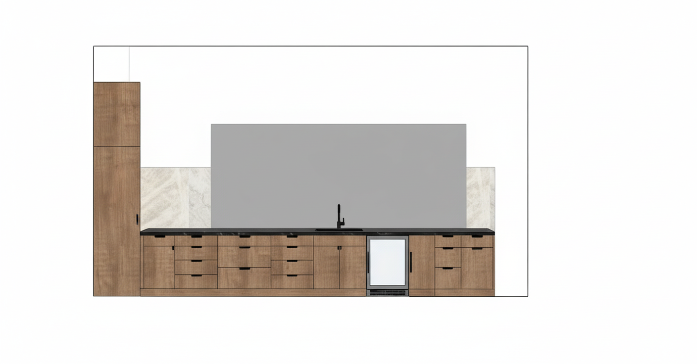add a 14 sliding glass door to the far right of the cabinets parallel to the cabinets