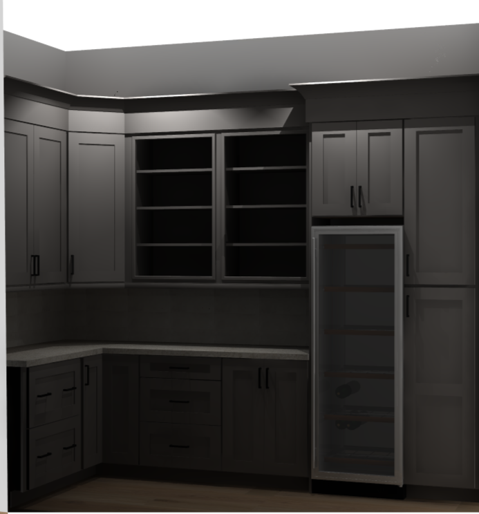 this is a scullery with no windows and under cabinet lighting