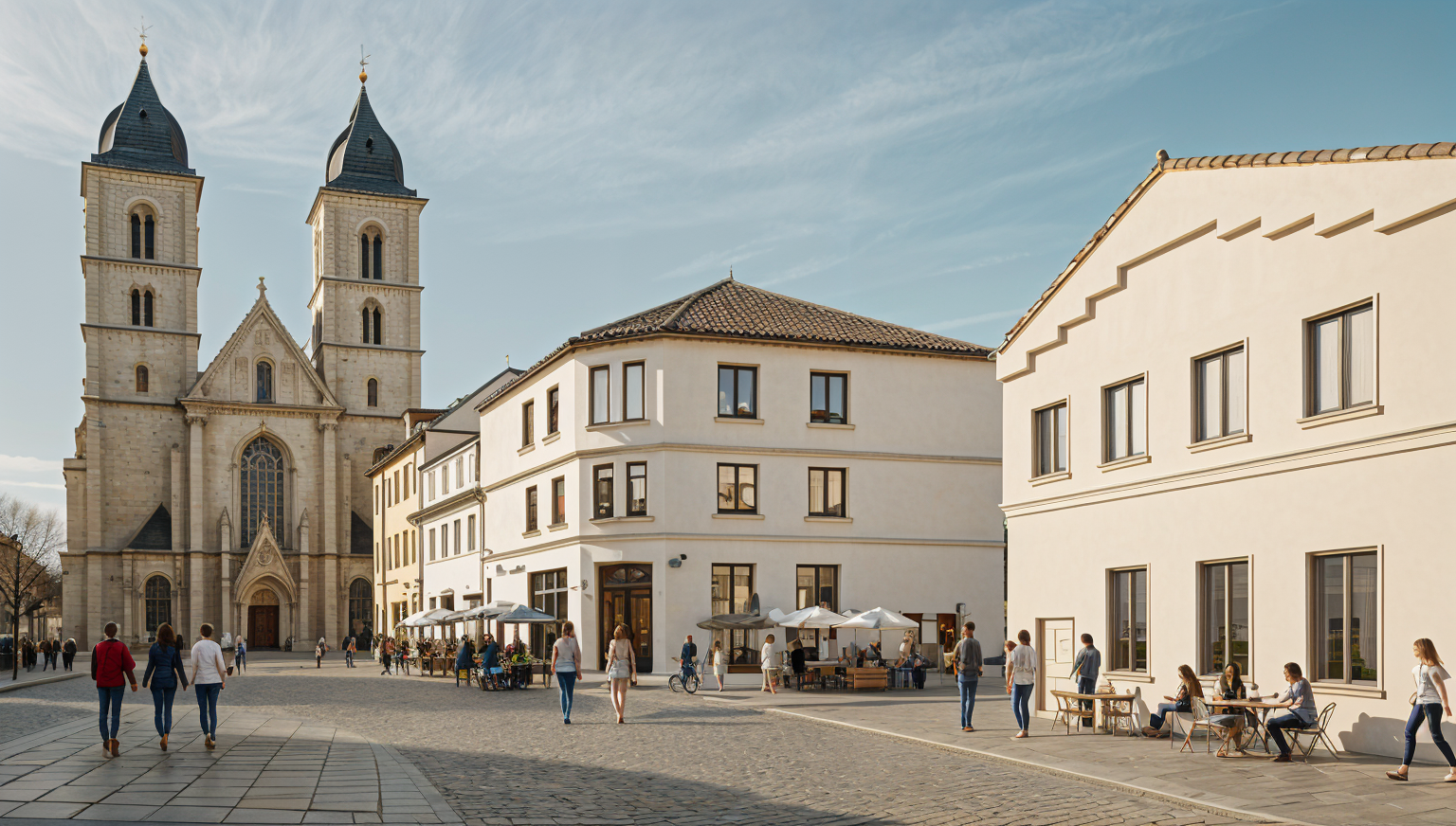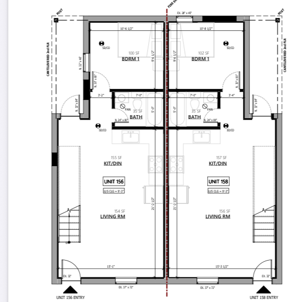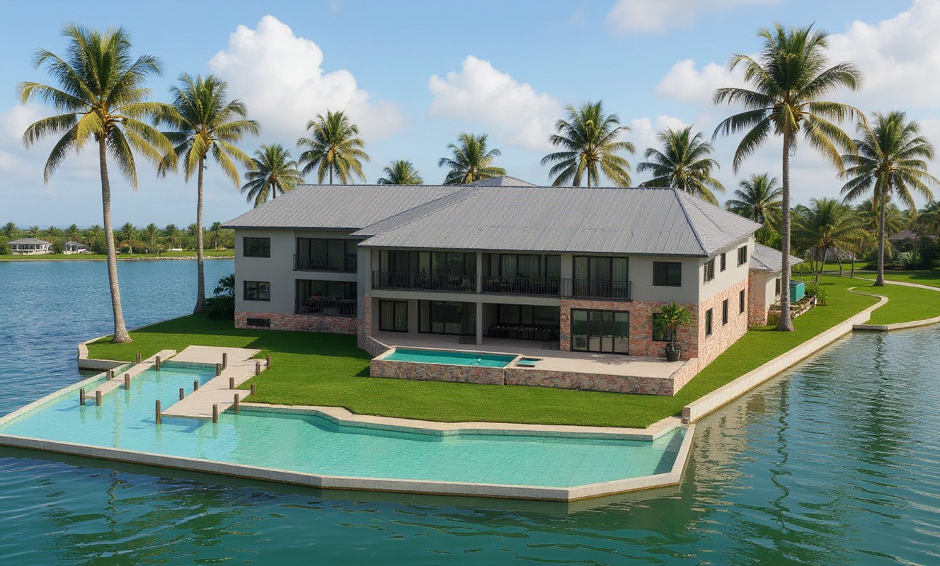 interior shot render a 3d version of this floor plan with 10 ceilings warm light brown flooring open wood monobeam staircase light beige grey kitchen with white stone countertops