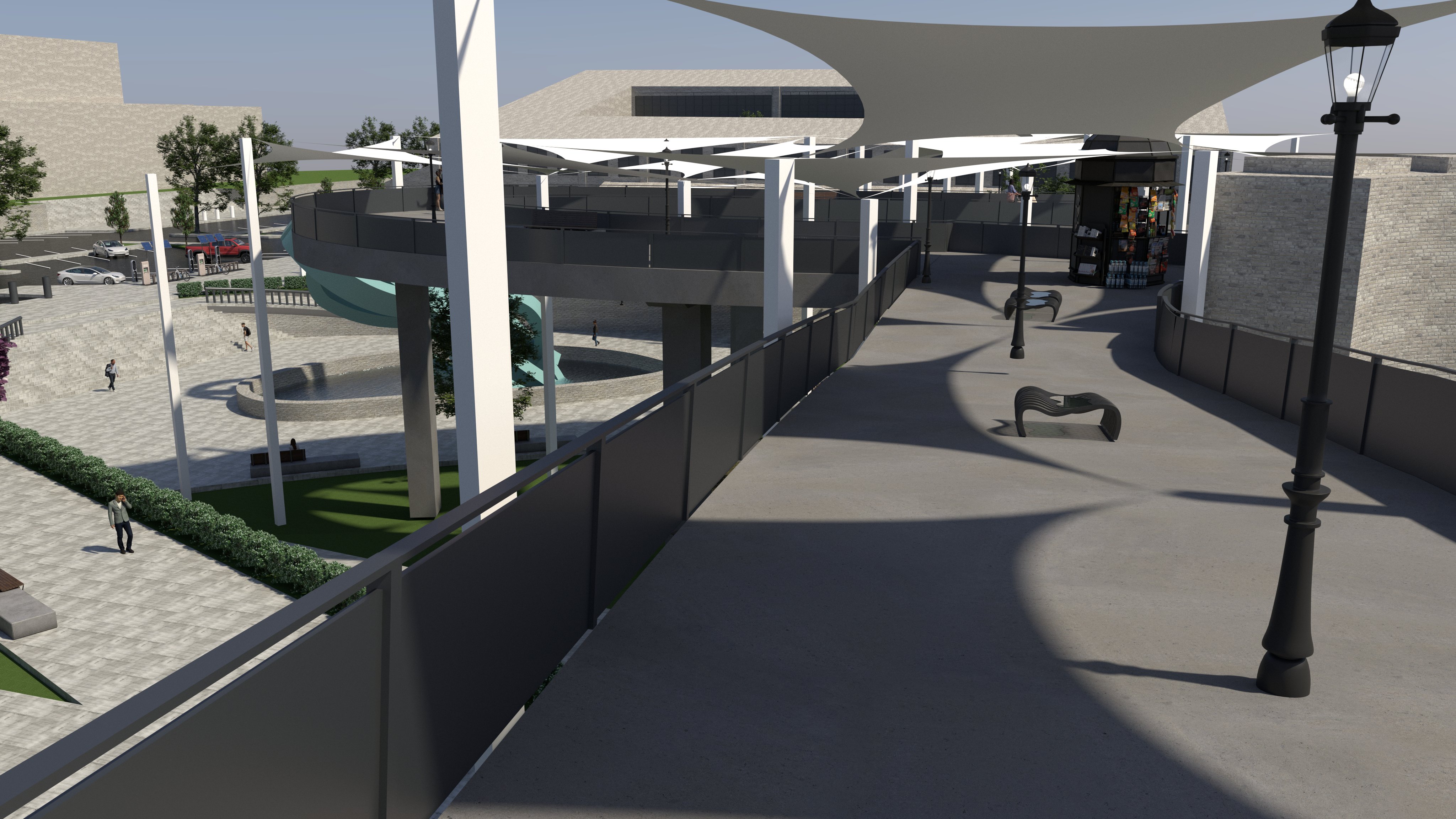make this a night image add lights to the bottom of the white columns add plenty of light on all light poles