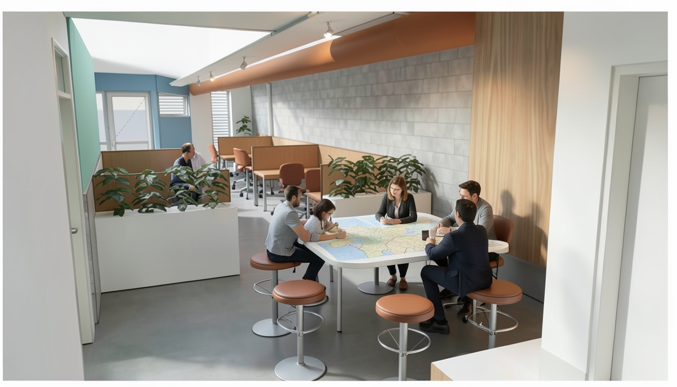 create a photorealistic rendering of this townhouse development using the uploaded exterior render image as the base maintain the exact building design materials proportions and facade details from the original image add one medium size tree crepe myrtle or similar positioned close to right frame of the image between the building and road neatly maintained lawn area with low native australian shrubs and grasses few feature plants soft shadowing and natural lighting realistic shadows and reflections balanced greenery that enhances the architecture without covering the facade overall feel clean modern australian townhouse development with high quality rendering suitable for marketing there should be no other buildings surrounding the development the light and the shadows should be from left to right add few trees outside the neighbouring boundaries