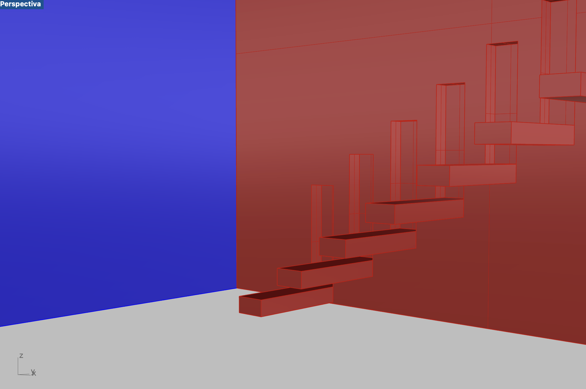 critical keep original geometry use the provided image as an absolute geometric reference do not modify geometry proportions step dimensions wall thickness angles or camera position generate an ultra defined 4k architectural render focused on stone realism and mass rock wall red reference area interpret the red area as a massive natural rock wall material dark to medium granite raw and structural texture must be coarse rugged and heavy with visible grain fissures micro cracks and natural imperfections no smooth or polished finish fully matte mineral tactile stairs the stairs must read as excavated directly from the rock mass each step is a solid granite slab carved from the same wall not attached or supported no joints no metal no concrete no added structure slightly chipped edges erosion marks tool cut traces strong shadow underneath each step to reinforce weight and depth blue area window exterior view the blue area is a window opening view from a high rise skyscraper distant city skyline atmospheric perspective lower part of the view includes green areas far below trees parks natural daylight entering only through this window grey area floor neutral mineral floor stone or concrete matte non reflective understated lighting single natural light source from the window light grazing the rock surface to enhance texture depth strong realistic shadows in crevices and under stairs no artificial lights no ambient fill exaggeration atmosphere monumental heavy architectural slightly dark high contrast emphasis on mass gravity and excavation camera static architectural view human eye level natural lens 24 35 mm equivalent render quality 4k resolution extreme photorealism physically based materials realistic global illumination and shadows final goal a hyper realistic architectural render where the staircase feels carved out of a single granite rock wall heavy and monumental contrasted with a distant city view through the window