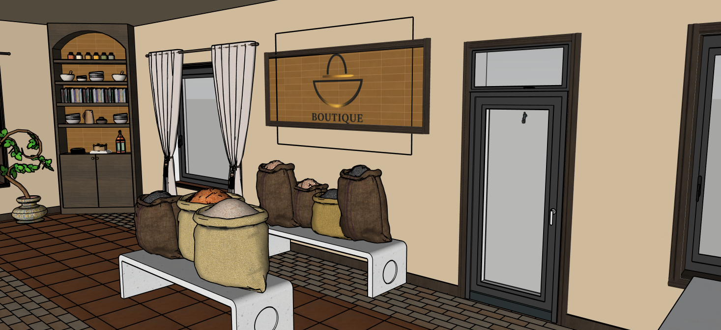vue de la rue par les fen tre et ne pas garder le rectangle mince autour de la signal tique boutique mais garder le cadre de bois et la c ramique jaune peu lustr e avec la signal tique