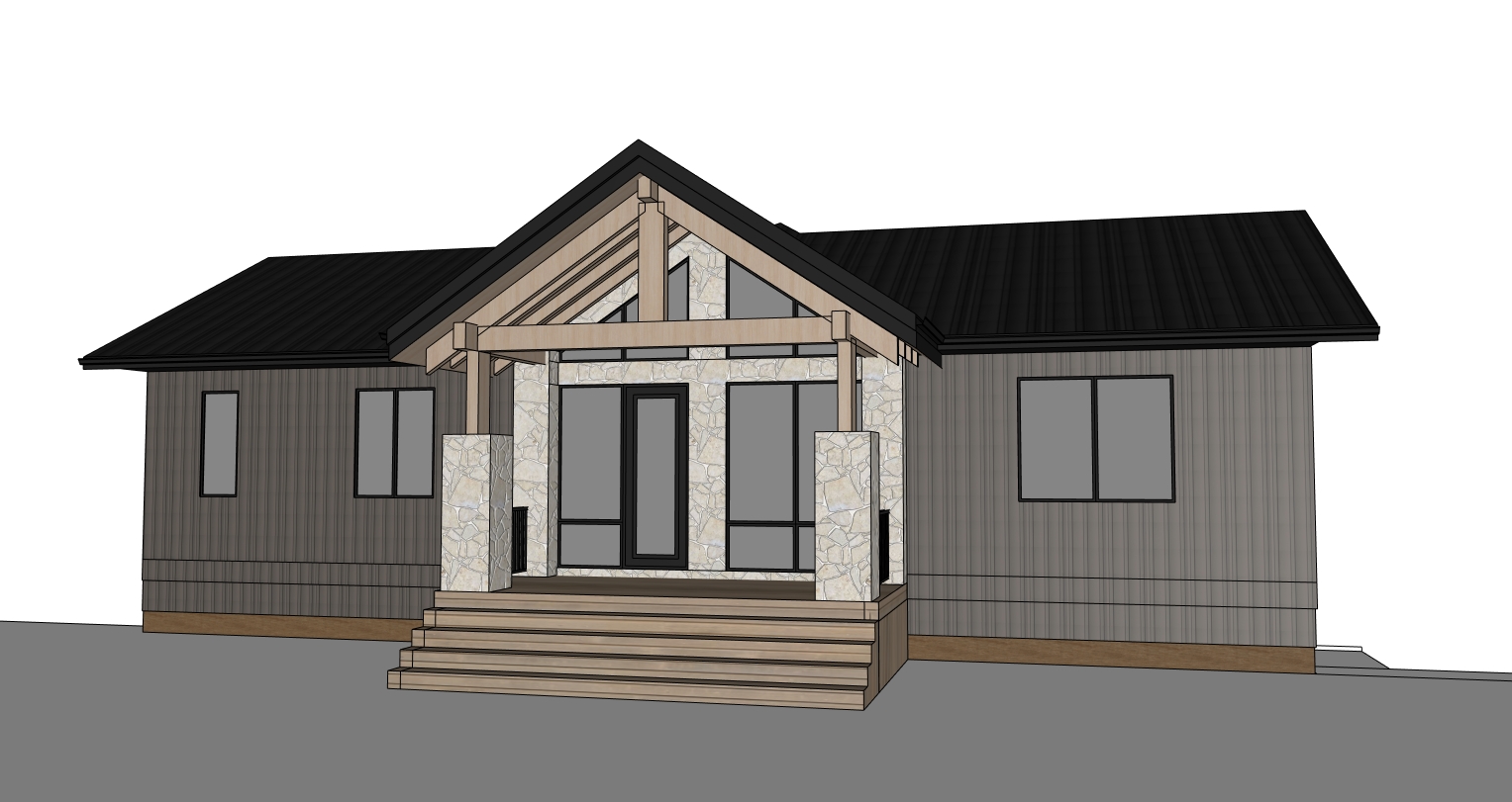 cabin is on a wooded lot lakefront the lake is visible from this angle in the background in the foreground there are birch and pine and spruce and poplar trees in the background in autumn sun is setting over the lake lake is about 2 kilometres wide and shore is slightly visible on the other side landscaping is minimual with canadian shield rock and some patches of forest floor