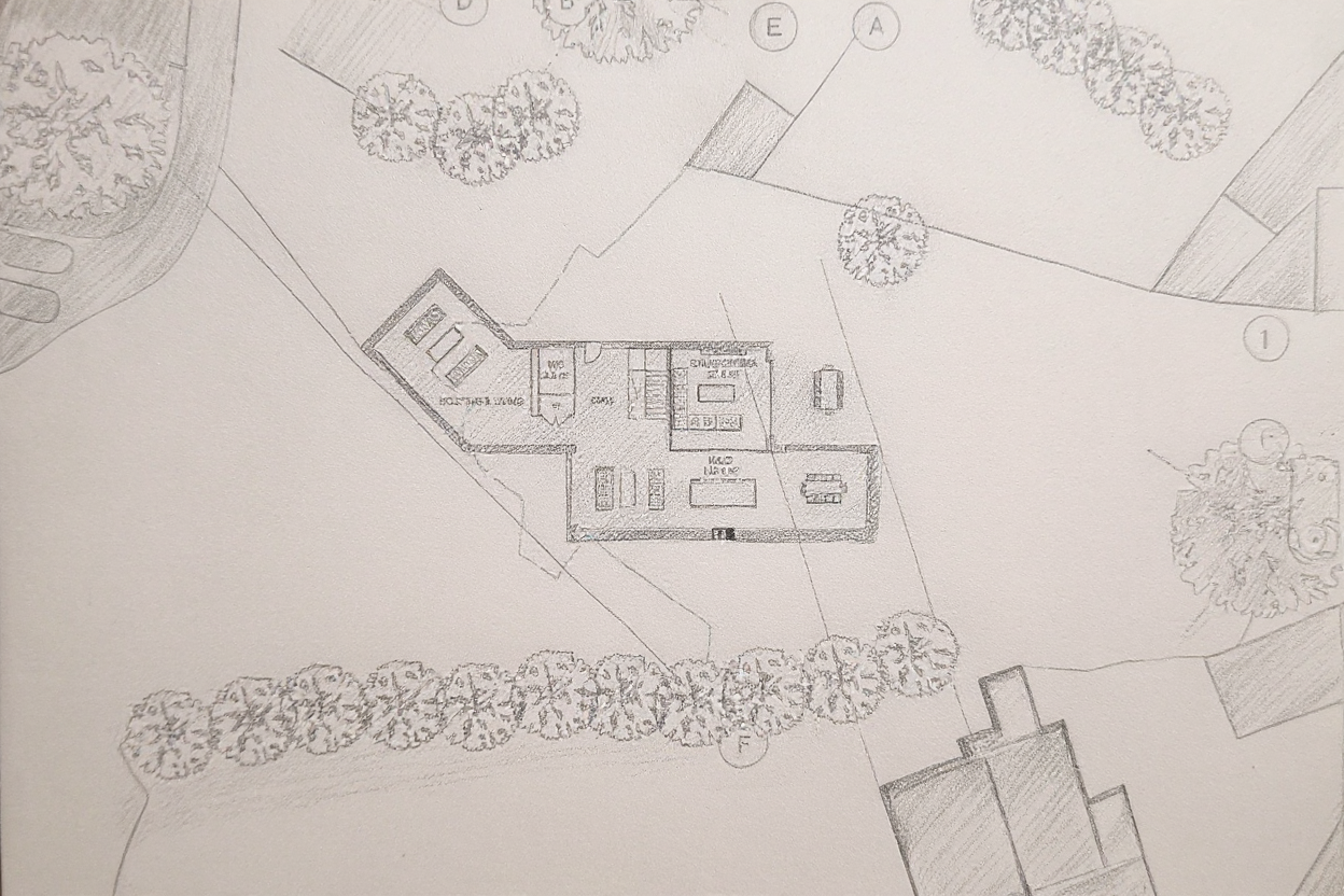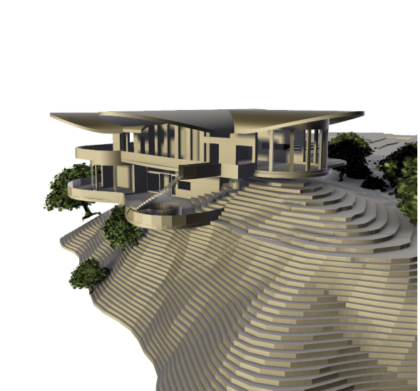 contemporary mountain research station architectural visualization sleek black glass and metal panel fa ade with exposed steel framing perched in alpine landscape surrounded by evergreens and rugged rock formations midday sunlight crisp blue sky high contrast reflections on glass warm tones from wood detailed environmental integration realistic materials and lighting cinematic composition archsynth style ultra detailed architectural rendering 8k photorealistic