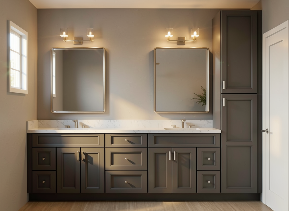 enhance this photo of a kitchen into a professional interior image optimize the lighting so the space appears bright natural and inviting with soft realistic light entry and balanced shadows subtly increase sharpness and clarity correct white balance and colors so that materials such as wood stone metal and lacquer appear true to life and luxurious ensure the overall look is sleek stylish and high end without changing the layout furniture or architecture maintain a realistic appearance refine contrast and details reduce noise and give the photo a warm elegant interior style like in a premium kitchen catalog