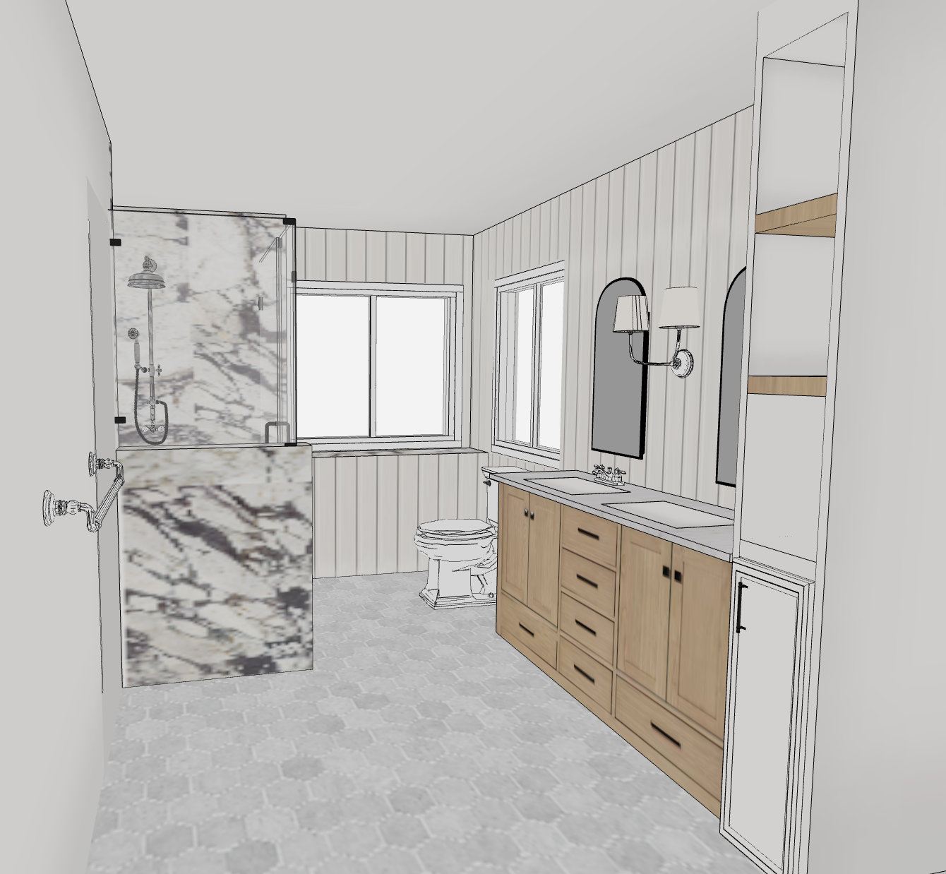 keep everything the same just make it look more real bathroom is nice and bright walls are a soft white all plumbing and towel bar is chrome lightly stage