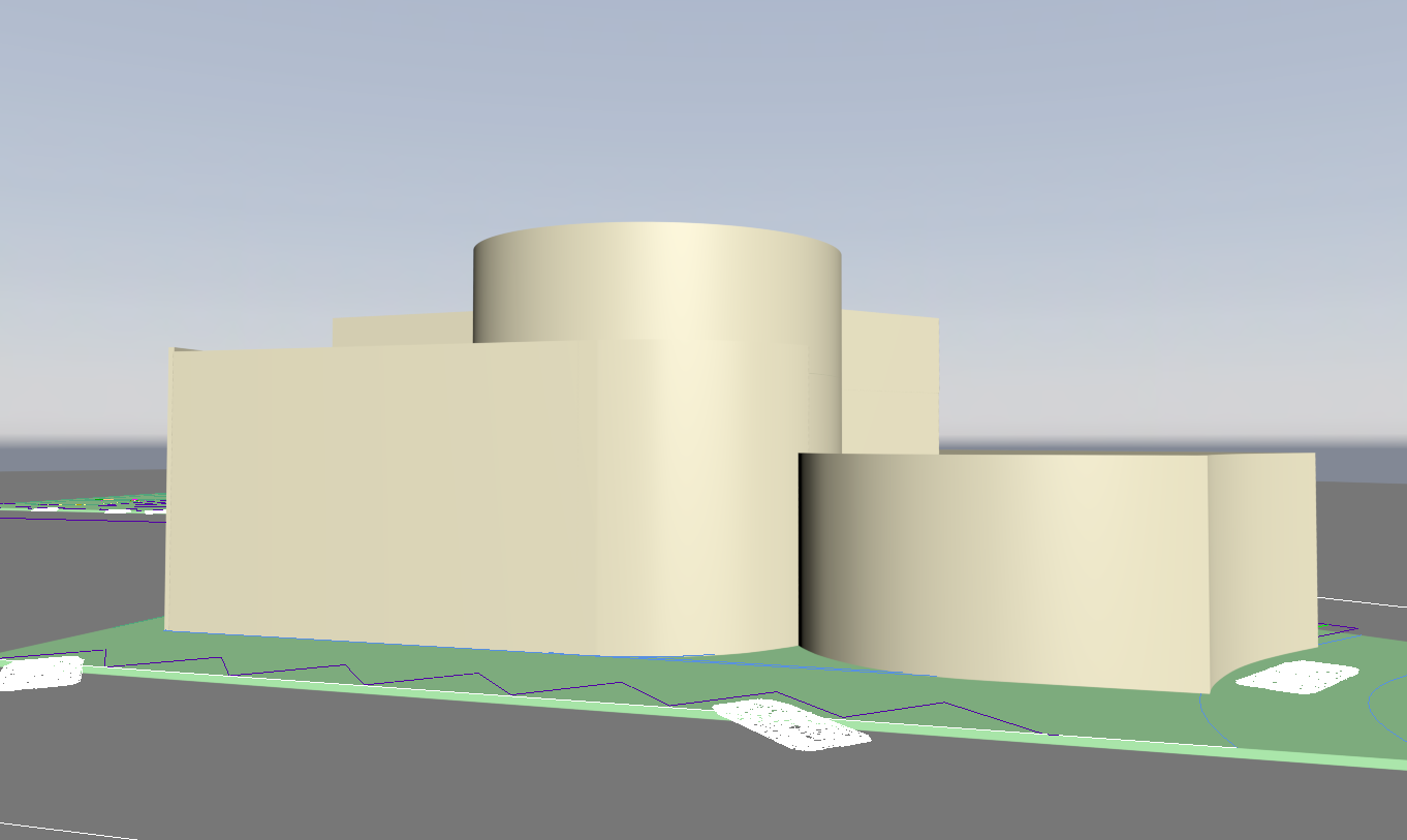 exterior shot glass curve building with rustic pipe