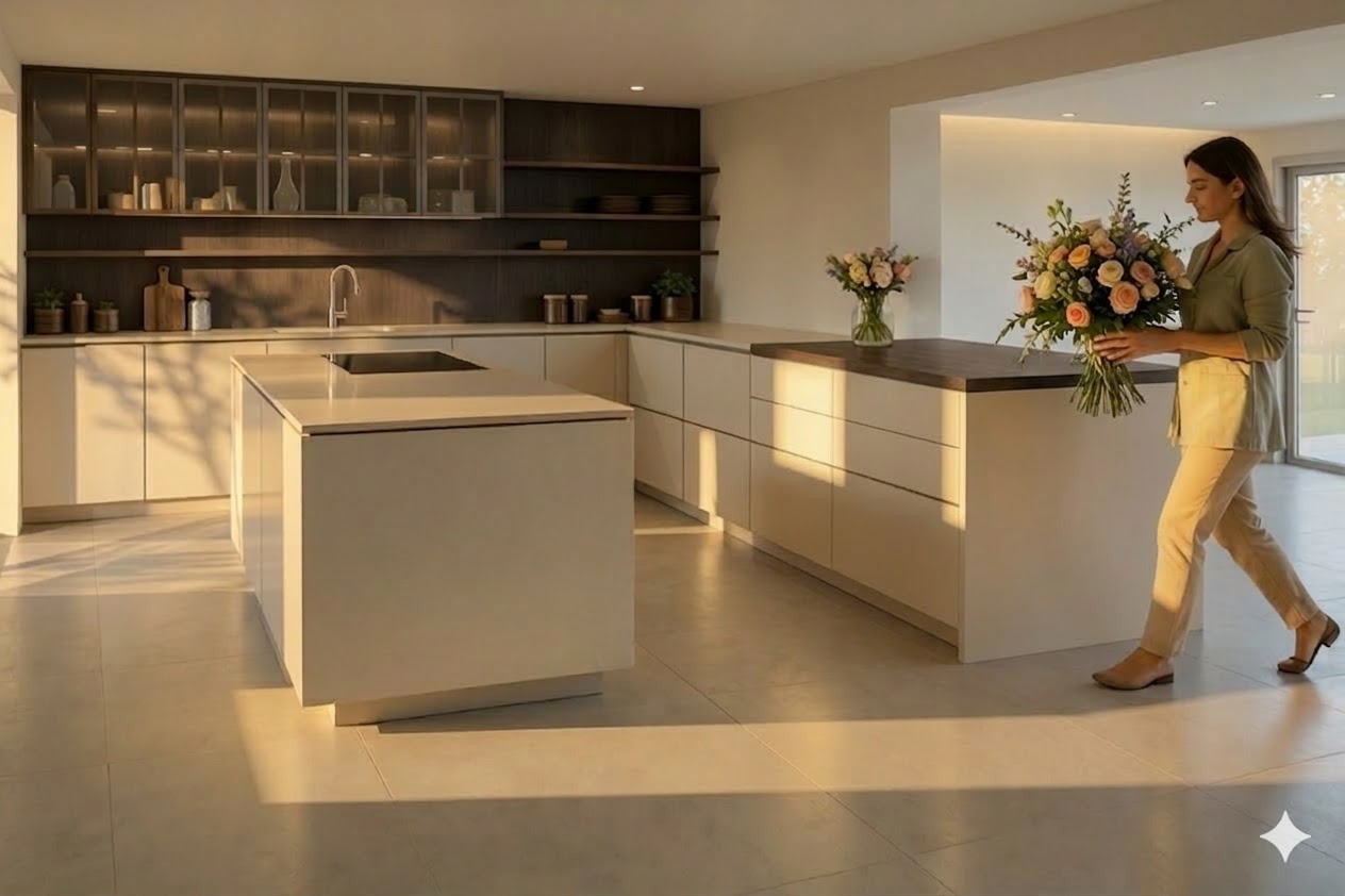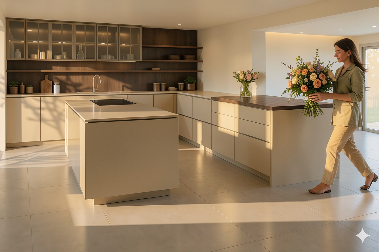 mache die beigen k chenfronten alle in der gleichen aufteilung entferne die line dazwischen