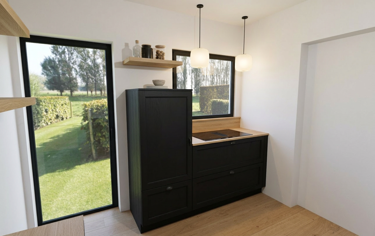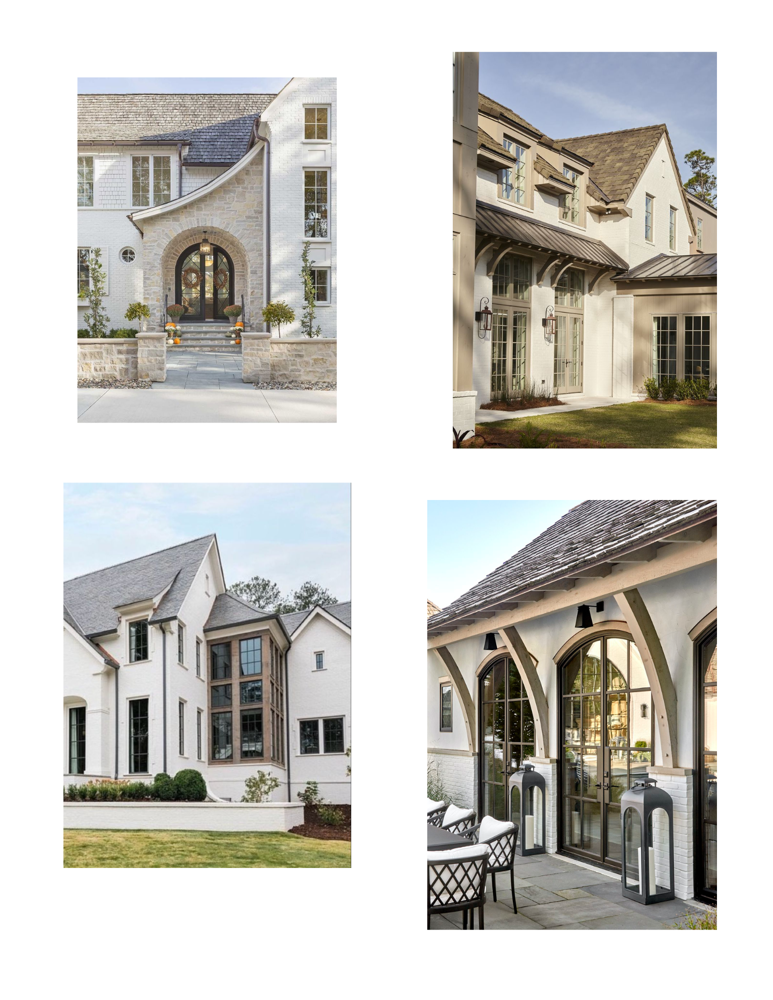 create a front elevation for a 2 level townhome based on the design board inspiration