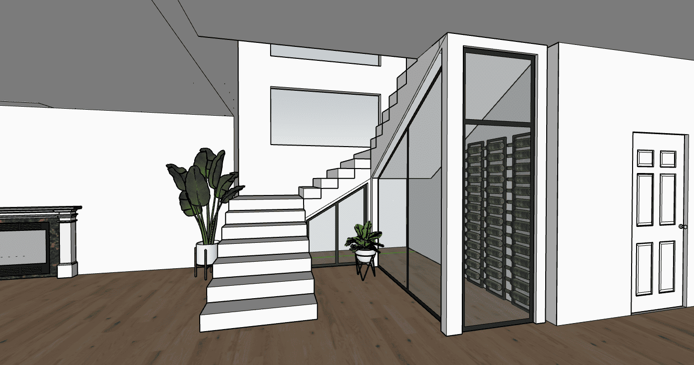 add modern handrail on the stair add chandelier by the window above stairs