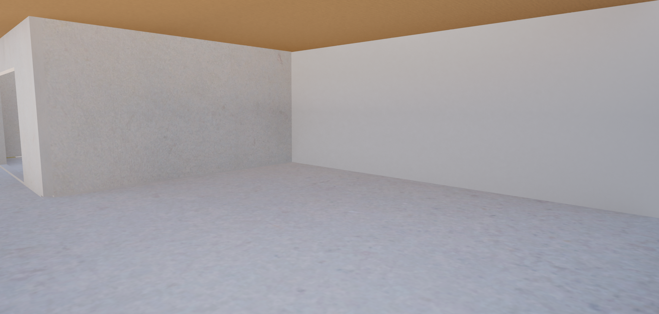 photorealistic architectural interior render of an exact corner space do not change the architecture in any way keep the exact same corner angle exact same wall proportions exact same ceiling height exact same warm amber terracotta ceiling colour exact same white lime plaster walls exact same polished concrete floor do not add any windows do not add any doors do not change the room shape or dimensions in any way whatsoever on the left wall a floor to ceiling built in towel and amenity station in warm sandy lime plaster open shelving with warm led strip lighting glowing under each shelf neatly rolled white towels stacked on shelves small ceramic vessels and aire branded product bottles displayed on lower shelves two recessed arched niches in the wall with internal warm lighting displaying spa products and small ceramic objects lower closed flush cabinets at the bottom with minimal brass handles a small stone counter at waist height for guests to place belongings no robes anywhere on the right wall a row of 2 circular shower enclosures each shower is a perfect circle in plan defined by a continuous curved low plaster wall going from floor to ceiling forming a full cylindrical enclosure open at the front with no door inside each cylindrical shower a single ceiling mounted rainfall shower head centred above warm terracotta zellige tile cladding the curved interior walls of each cylinder from floor to ceiling polished concrete floor with a subtle circular drain at the centre of each shower base in the corner between the two walls a small low stone or travertine bench warm golden ambient lighting throughout same cozy warm atmosphere as a luxury roman bath spa no people no plants no robes photorealistic render 8k cinematic depth of field 35mm lens