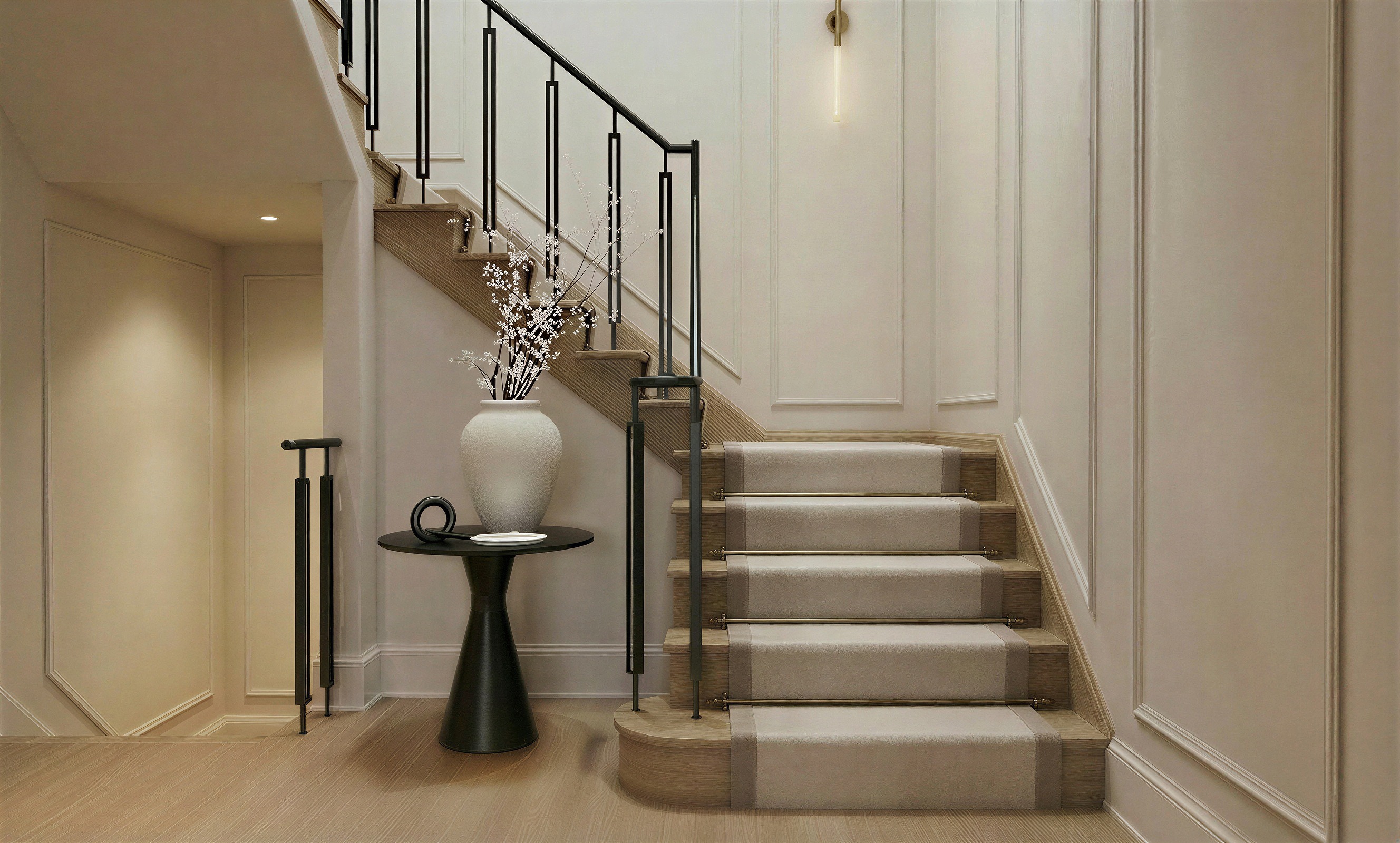 keep everything the same but simplify the railing keep it transitional with black metal