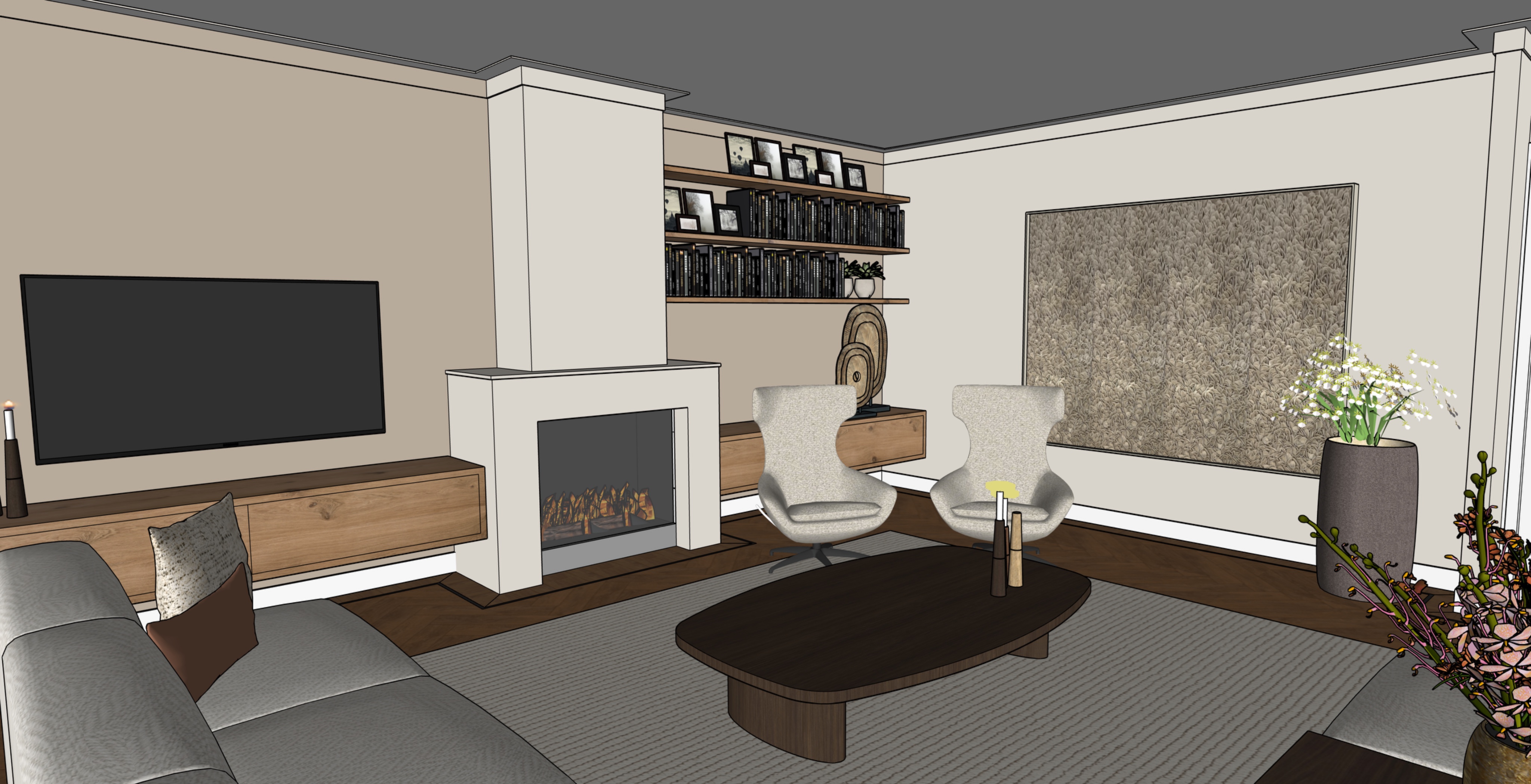 render of 3d model turn on the candles and fireplace natural light is coming in trough windows on the left which you want see in the picture