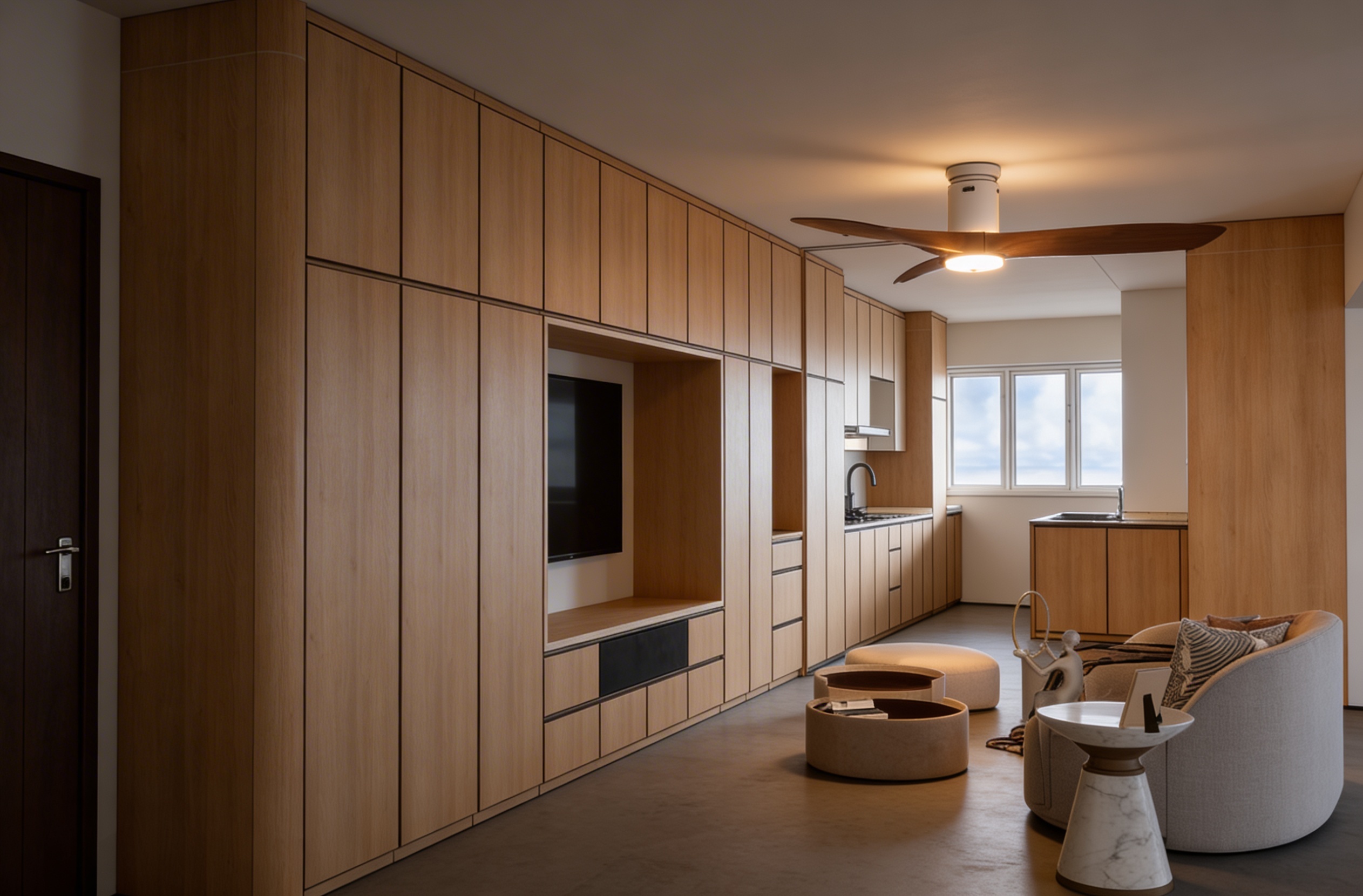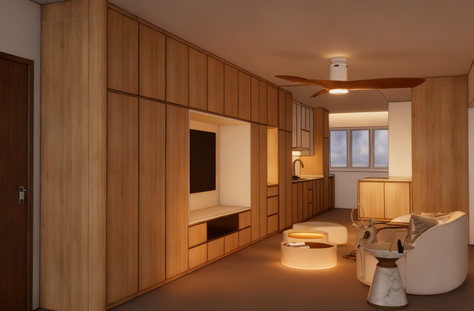 all material and colour stay do not change realistic rendering ambiance lighting ceiling fan with light natural lighting