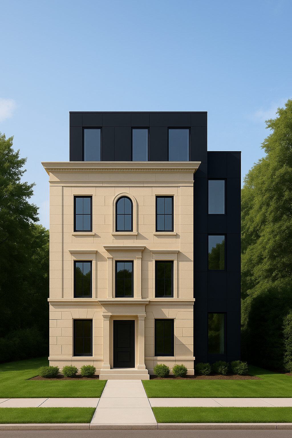 3 story multifamily 55 wide by 55 deep old architecture front on 2 floors