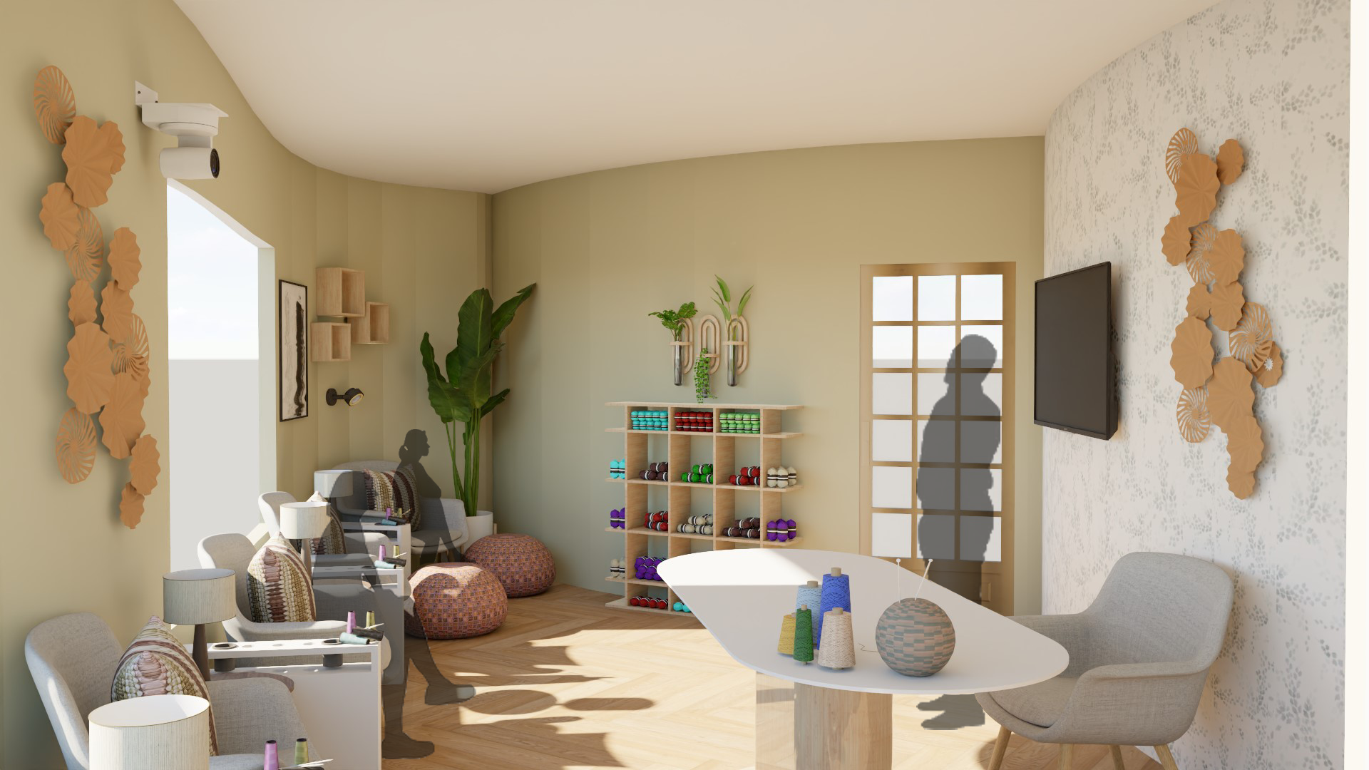 add glazing to window and natural lighting add frosted glazing to door so you can t see through add 1 digital technology panel on ceiling with tops of cherry trees that s it nothing else