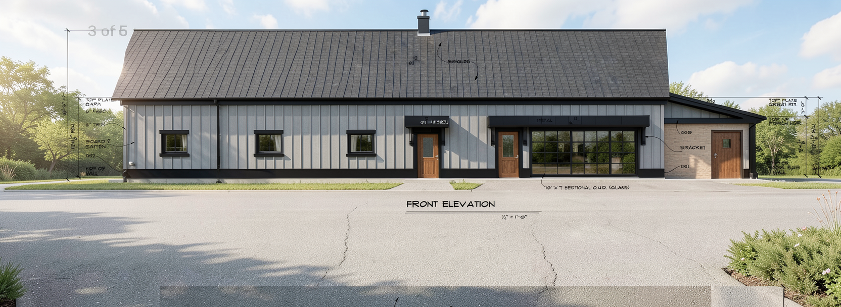 make siding gray make trim and windows black make all doors brown woodgrain remove door from overhang on the right side of the hous