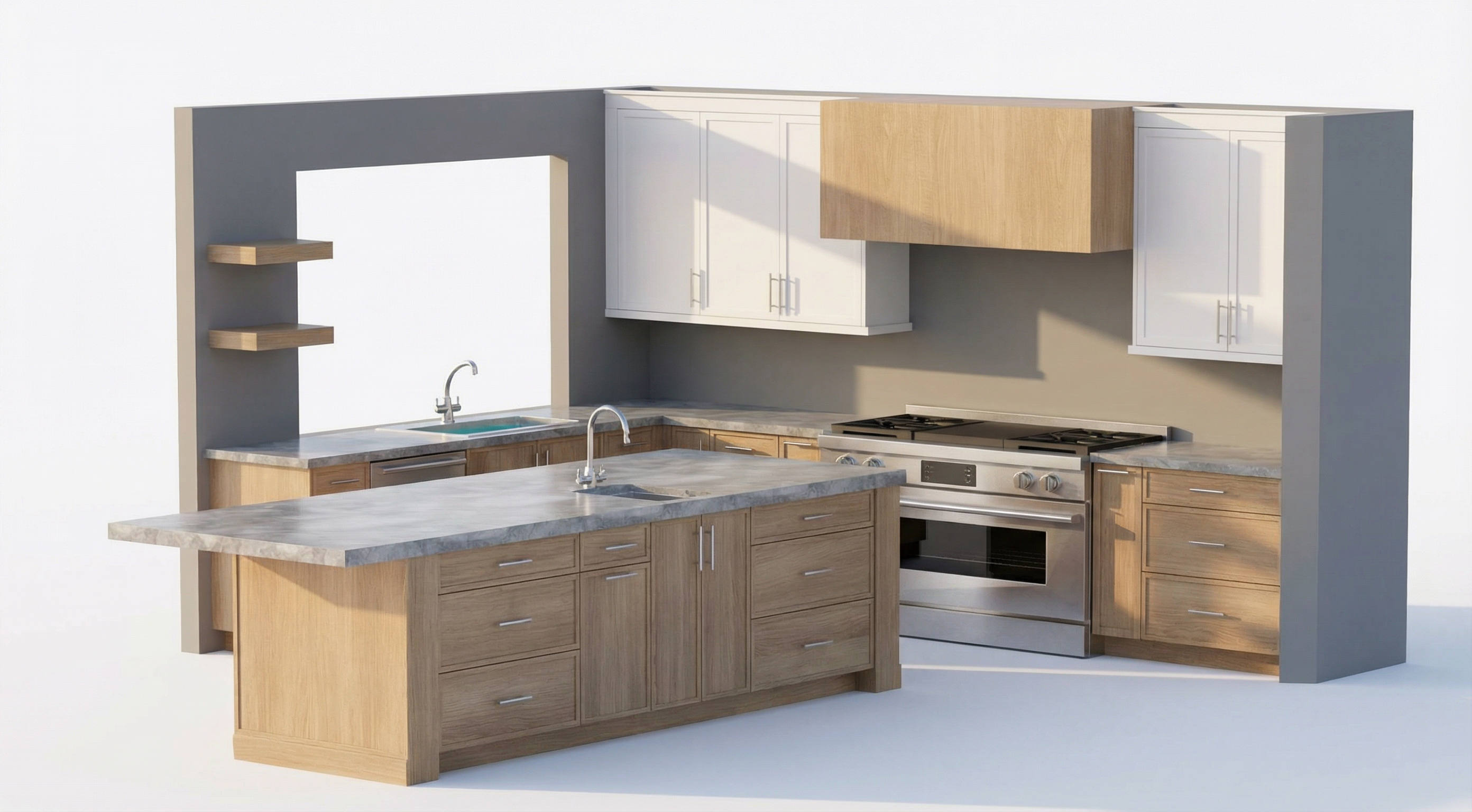 transform this livingroom image into a hyper photorealistic rendering while preserving the exact original geometry design layout proportions ceiling details wall depths openings doors cabinetry locations millwork dimensions island proportions built ins and circulation paths with zero architectural changes replace all textures with high quality real world materials including wood surfaces that must appear as smooth solid plank material brushed metals polished stone and slab surfaces must have light natural veining with subtle variation and layered depth veins should be soft and organic never bold busy or high contrast and smooth painted surfaces add luxury interior lighting with subtle reflections realistic shadows and daylight ambience maintain the original design intent precisely enhancing only the materials and lighting render the scene with editorial realism suitable for a luxury interior design magazine crisp details refined depth photorealistic finishes daylight interior and sophisticated atmosphere turn picture into a hyper photorealistic rendering