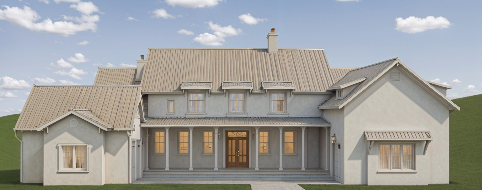 remove red color around windows add clouds to sky this facade should be lit by sunlight