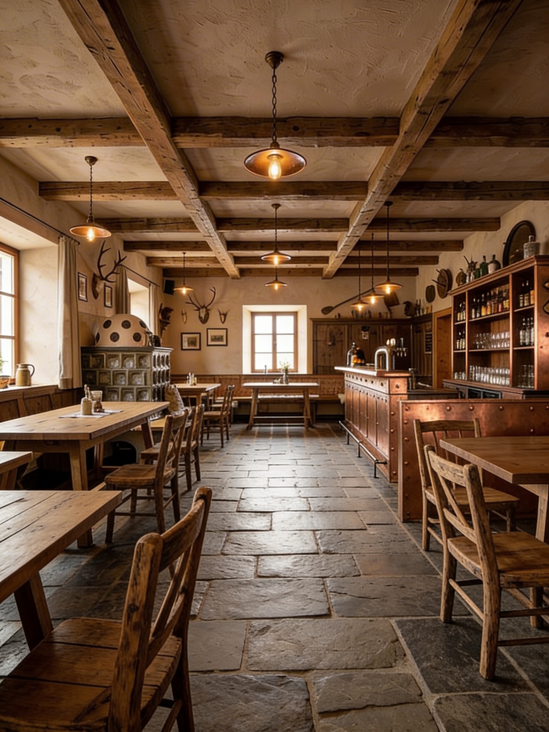 cover the entire front wall the one with the window in the center with rough wooden boards remove paintings taxidermy heads and other items already present on the same wall